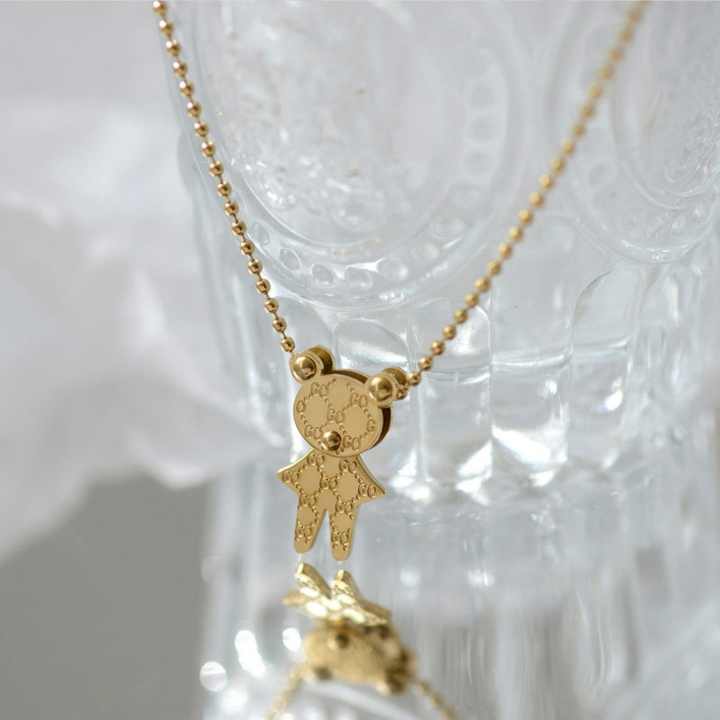 สร้อยคอหมีการ์ตูน 3 มิติ น่ารัก ขนาดเล็ก ชุบทอง 18K บนสแตนเลส เหมาะสำหรับผู้หญิงหรือเด็ก สำหรับงานปาร์ตี้และเป็นของขวัญ