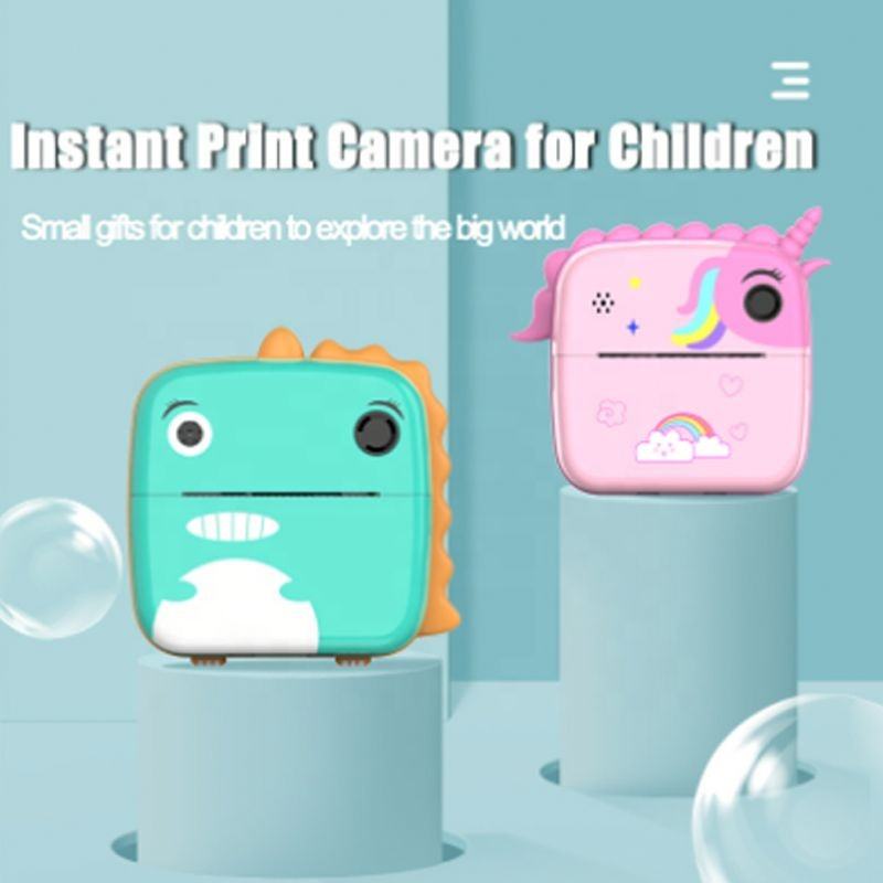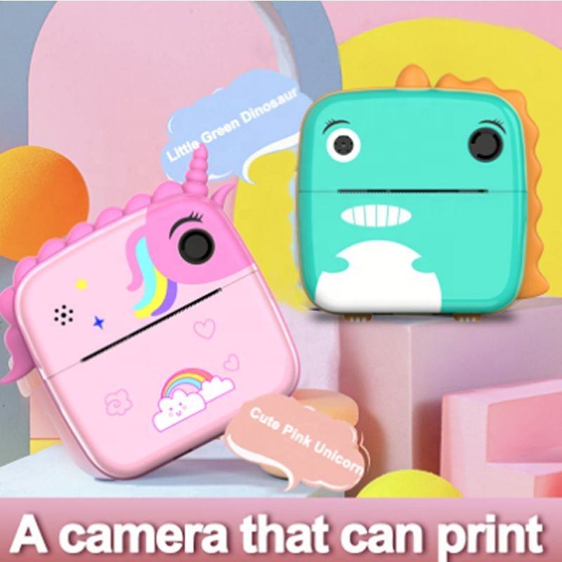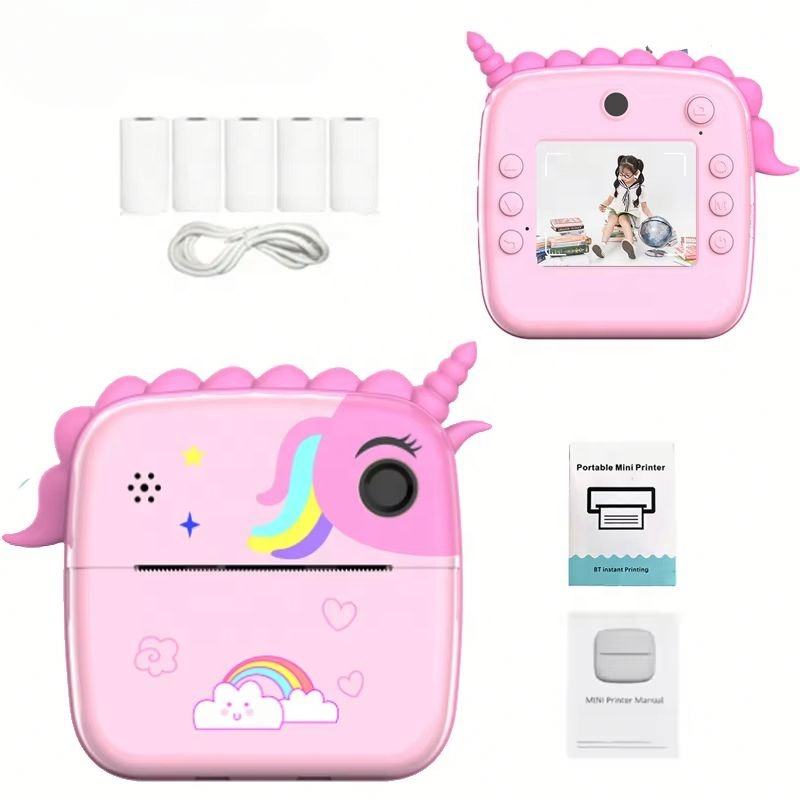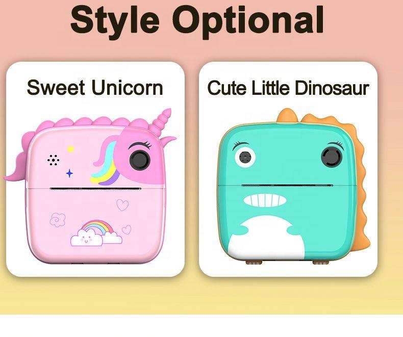 เครื่องพิมพ์ฉลากภาพดิจิทัลพกพา ลายยูนิคอร์นน่ารัก ไดโนเสาร์จิ๋ว พร้อมฟังก์ชั่นบันทึกเสียง หน้าจอ 2.0 นิ้ว กล้องสำหรับเด็ก