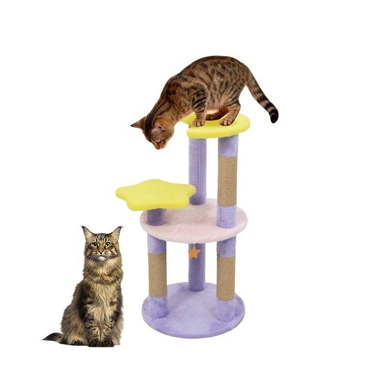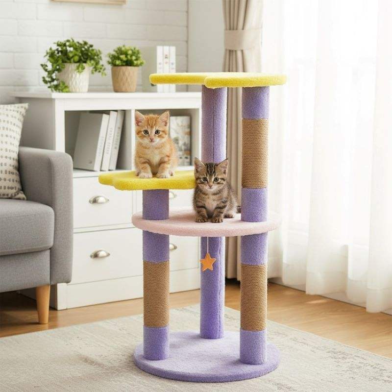 ต้นไม้แมวในบ้านดีไซน์ทันสมัยน่ารัก พร้อมแท่นวางและที่ลับเล็บสุดเก๋เพื่อความสนุกของเจ้าเหมียว