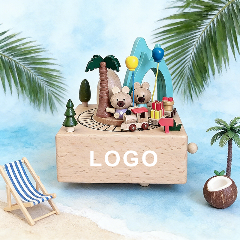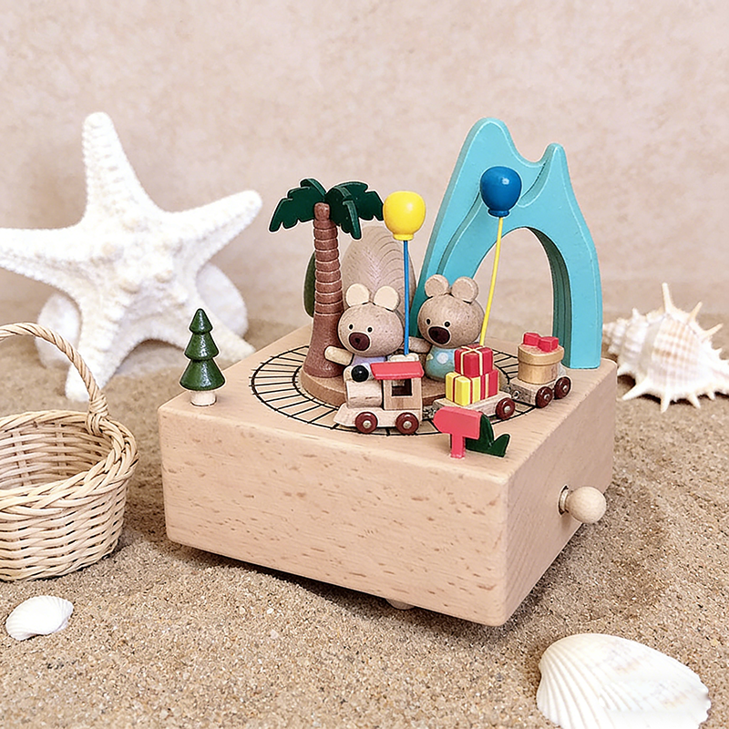 กล่องดนตรีม้าหมุนไม้เนื้อแข็ง