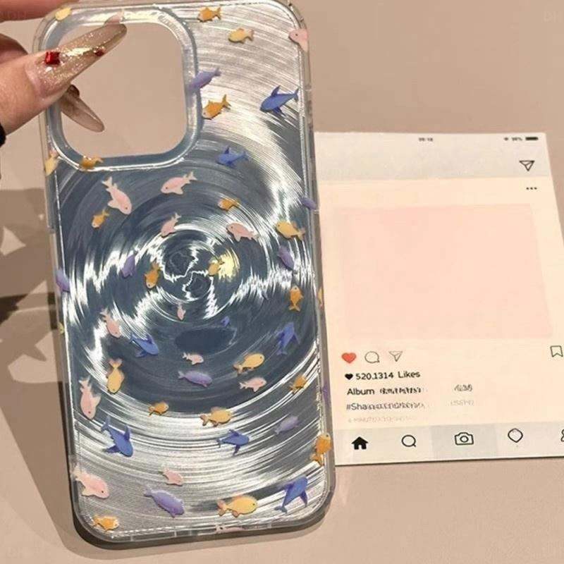 เคสโทรศัพท์ลายปลาทะเลน่ารัก ลายวนเลเซอร์ สำหรับ iPhone 13, iPhone 11, 12, 14, 15, 16, 17 Pro Max ป้องกันการกระแทก