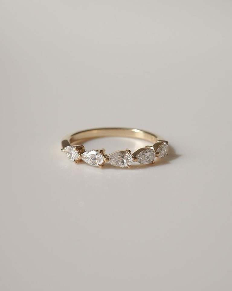 แหวนแต่งงานเพชรทรงลูกแพร์น่ารัก 5 เม็ด ทองคำแท้ 14K ของขวัญวันครบรอบสุดหรู