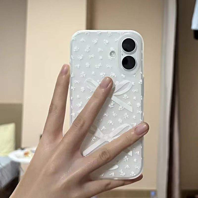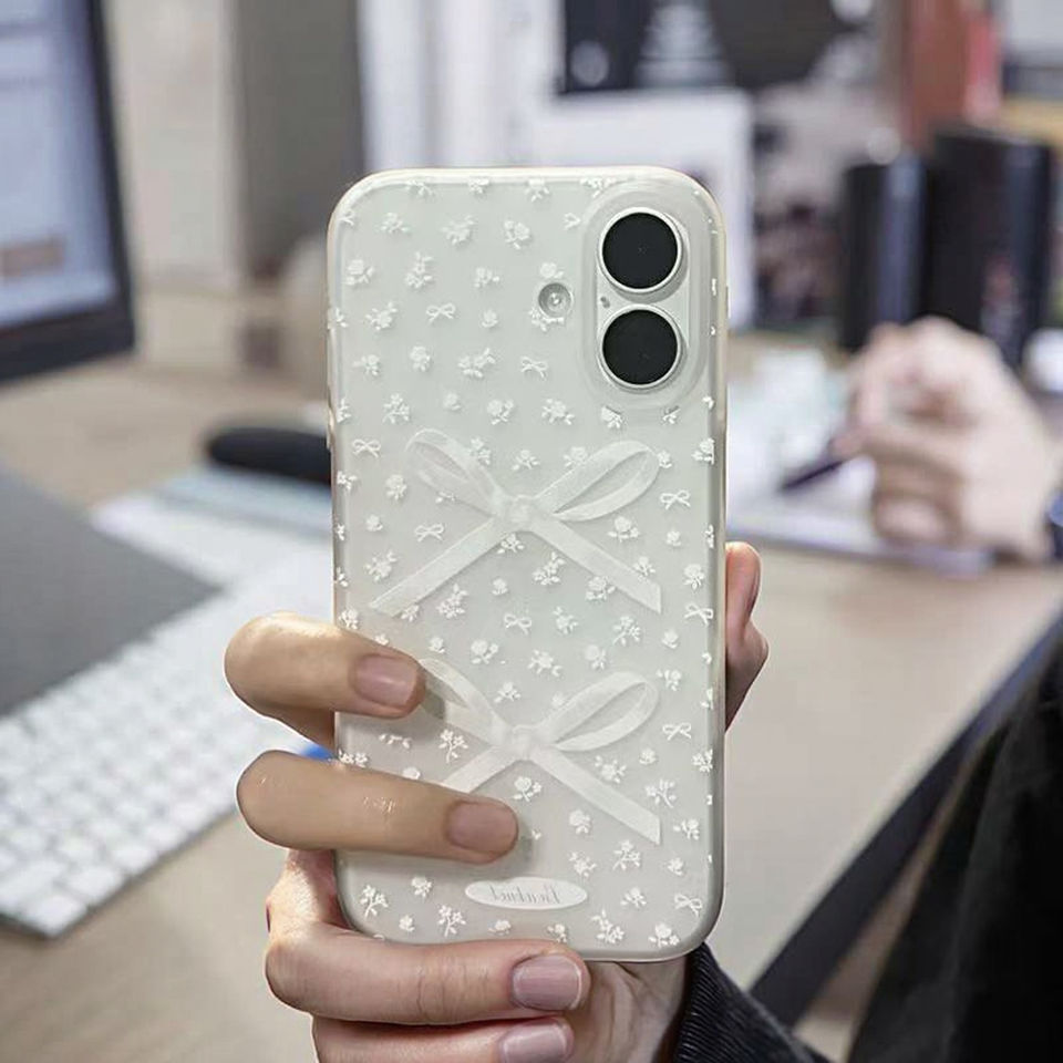 เคสรูปโบว์หัวใจสีชมพูน่ารักสำหรับ iPhone 17 16 15 14 13 12 PRO MAX 13 12MINI XR 7plus SE 2022เคสใสกันกระแทก