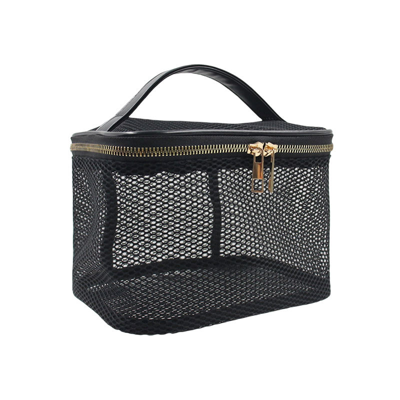 กระเป๋าเครื่องสำอางตาข่ายไนลอนแบบสั่งทำคุณภาพสูงสีชมพูน่ารักกระเป๋าเครื่องสำอางแบบตาข่ายพร้อมซิป