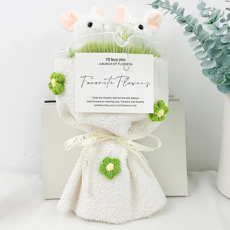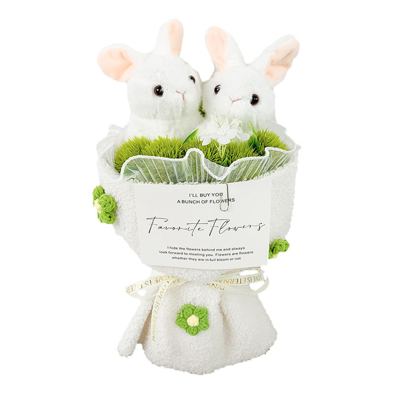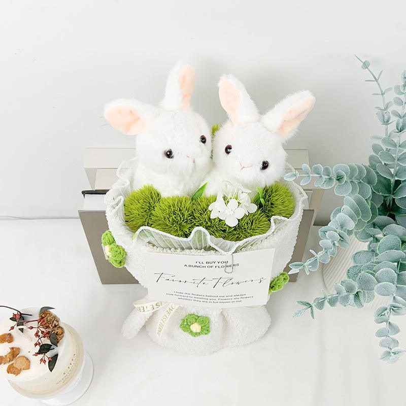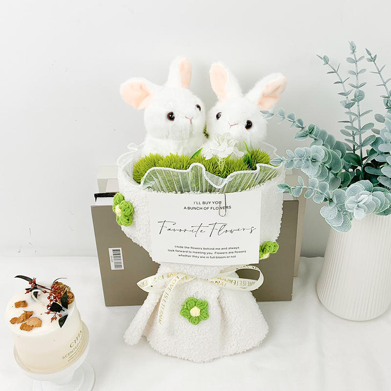 ดอกไม้แบบมือถือช่อดอกไม้ลายกระต่ายคู่น่ารักสำหรับแฟนสาว
