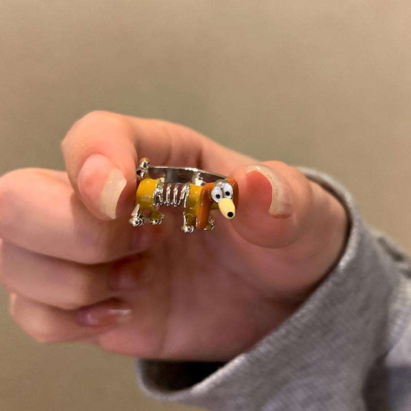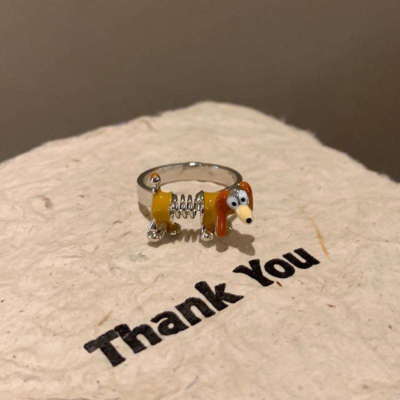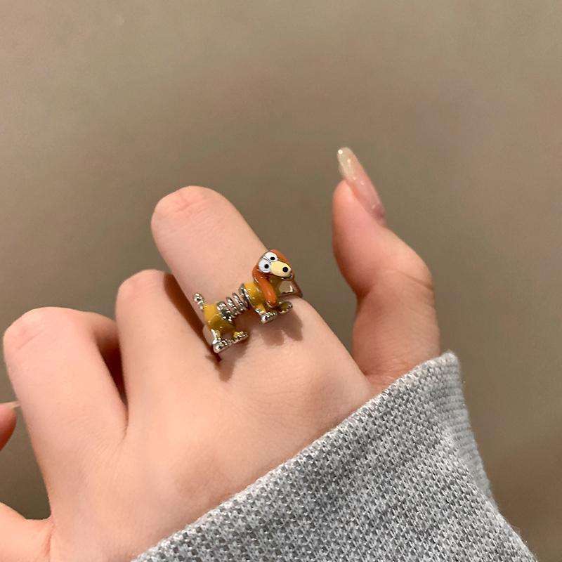 แหวนสปริงรูปสุนัขน่ารักแปลกตา แหวนนิ้วโป้งเด็กผู้หญิงน่ารัก แหวนเปิดปรับขนาดได้