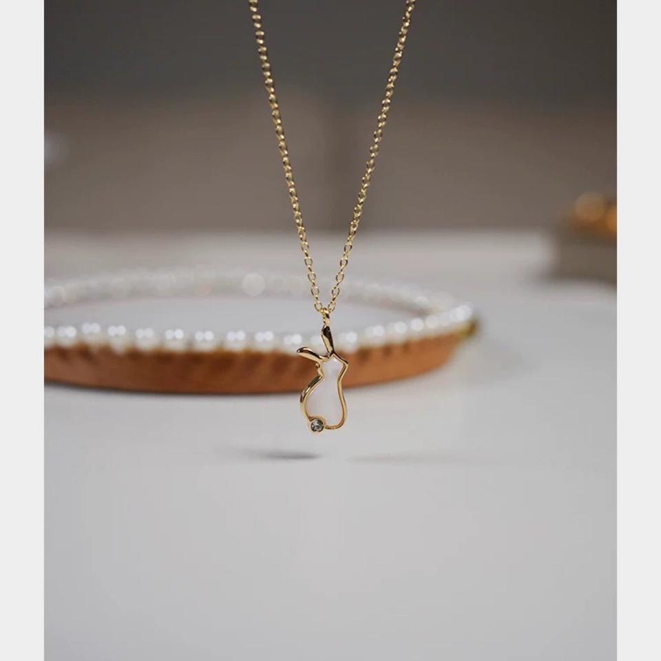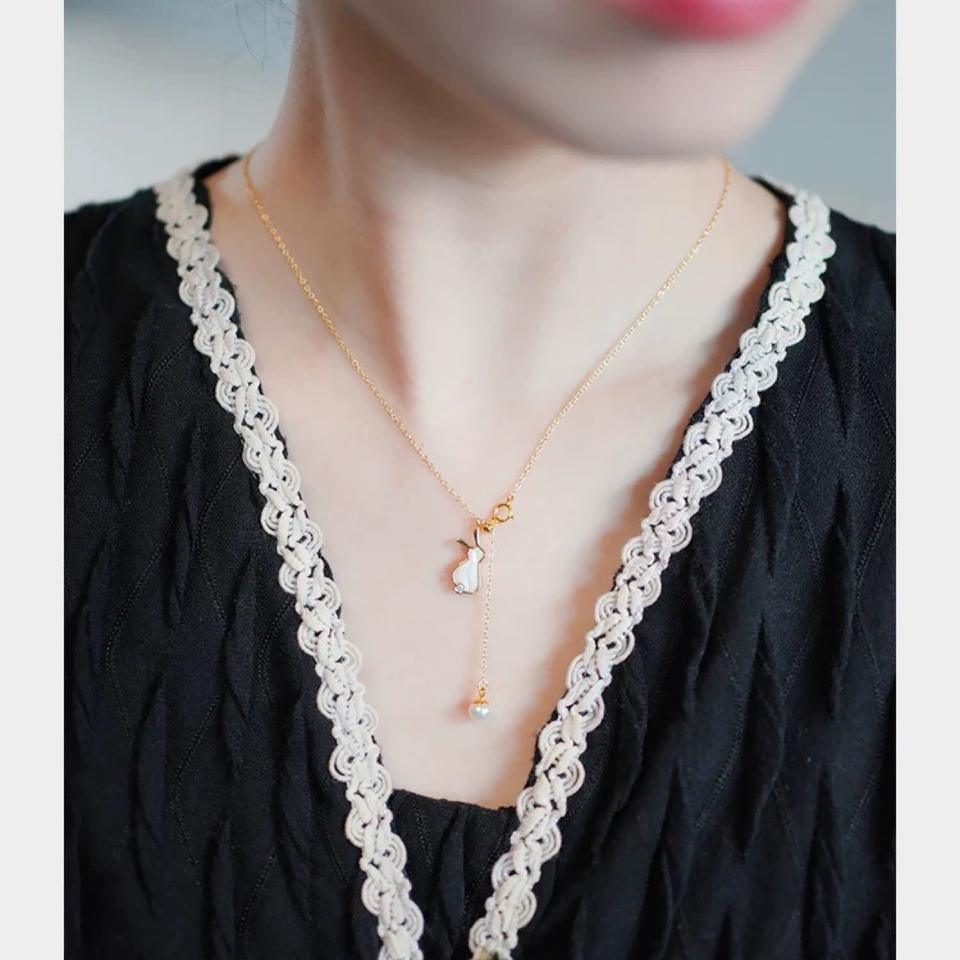 สร้อยคอกระต่ายน่ารักปรับได้พร้อมไข่มุกน้ำจืด สร้อยคอประดับไข่มุกสำหรับเด็กผู้หญิง ดีไซน์เล่นกับได้ พร้อมจี้และชาร์ม