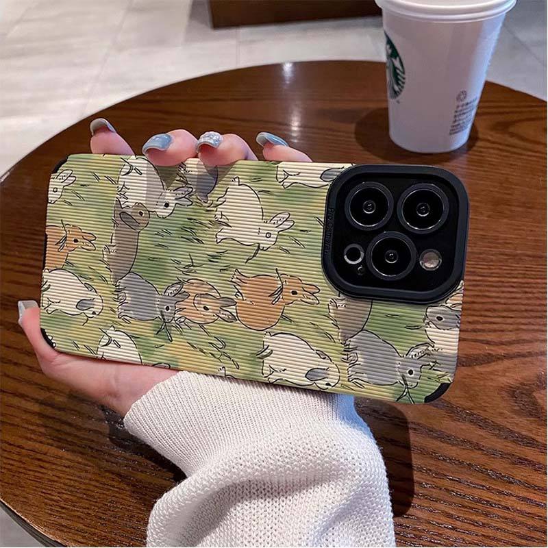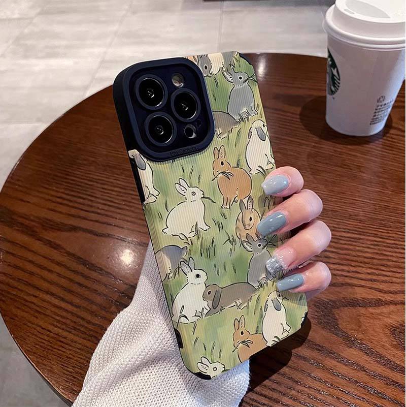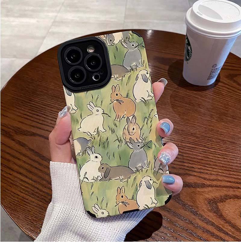 เคสโทรศัพท์มือถือหนังเทียมพิมพ์ลายเต็มหน้าจอลายกระต่ายน่ารักสำหรับ iPhone x XR XS 11 12 13 14 15 16 17 PRO MAX