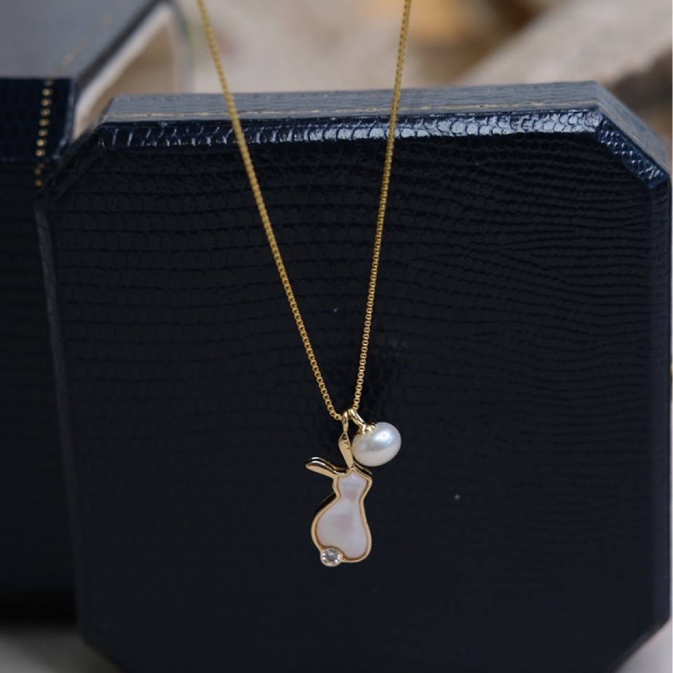 สร้อยคอจี้ไข่มุกน้ำจืดรูปกระต่ายน่ารัก Wenchi พร้อมสร้อยคอทอง 14K ดีไซน์เฉพาะตัว แฟชั่นเก๋ไก๋