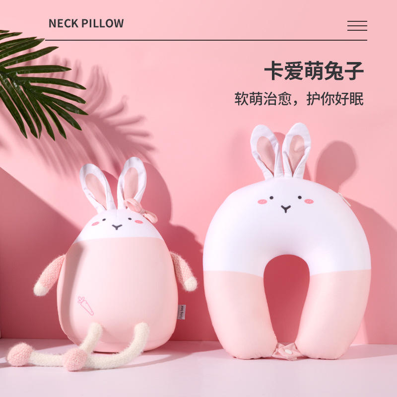 หมอนรองคอรูปตัวยูรูปกระต่ายน่ารัก นุ่มสบาย สำหรับเด็กเดินทาง นอนหลับ สีชมพู เหลือง เขียว ใช้ได้ทั้งเด็กชายและเด็กหญิง