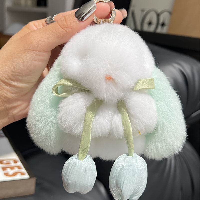 พวงกุญแจขนกระต่ายเร็กซ์แท้น่ารักพร้อมจี้กำมะหยี่ขนาดเล็กกระเป๋าเป้สะพายหลังกระต่ายปลอมของตกแต่งของขวัญงานปาร์ตี้