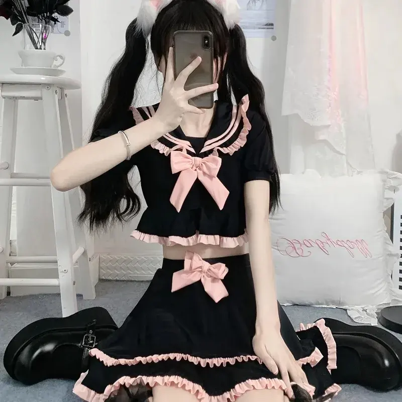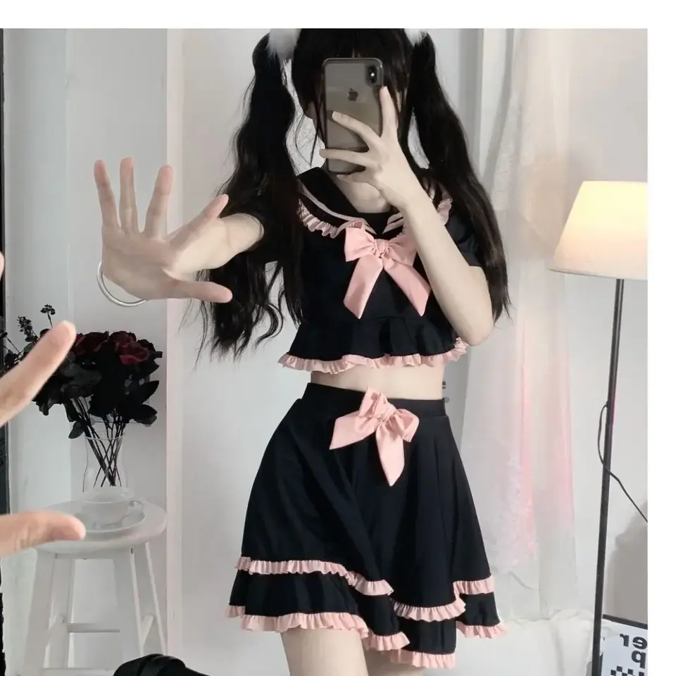 ชุดว่ายน้ำสองชิ้นสำหรับเด็กนักเรียนหญิงคอสเพลย์ sukumizu Bikini ชุดเสื้อและกระโปรง