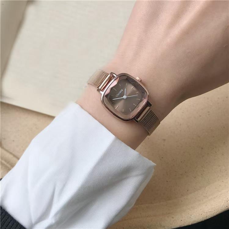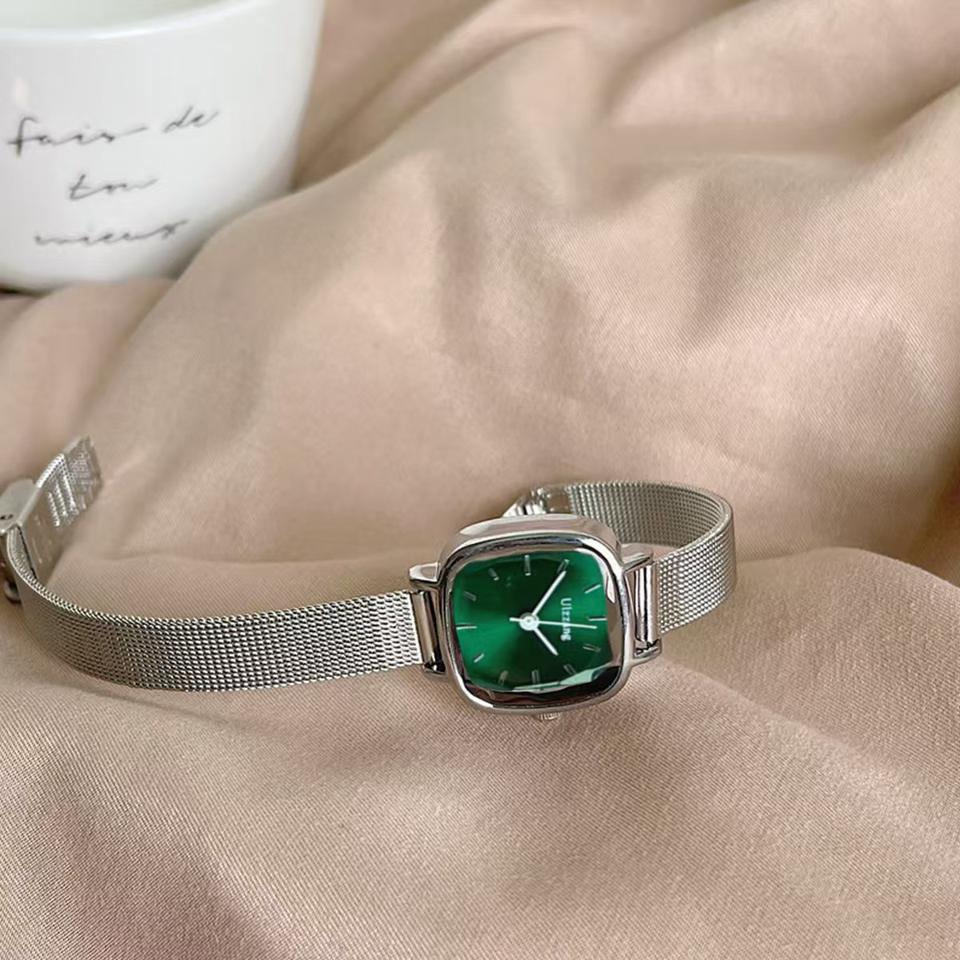นาฬิกาผู้หญิงหน้าปัดสี่เหลี่ยมเล็กน่ารักสายสแตนเลสหน้าปัดหลากสี