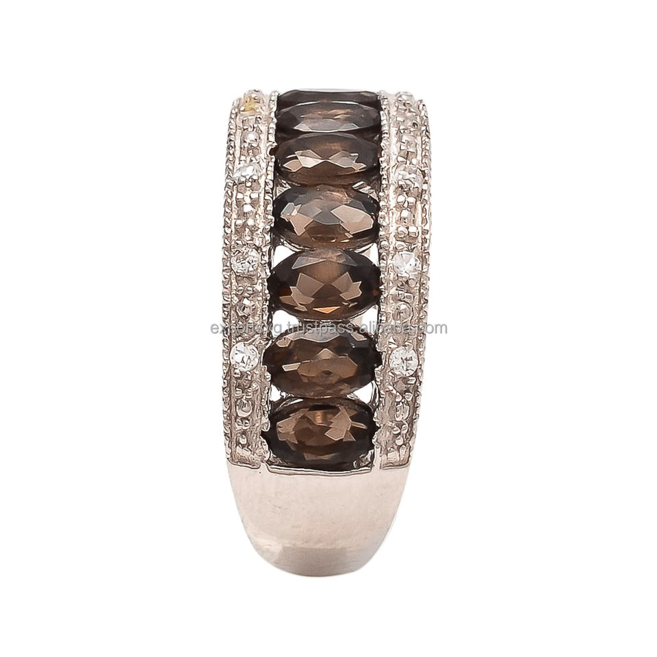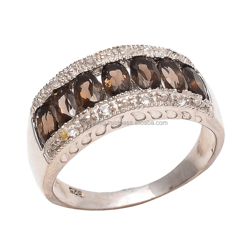 925พลอยควอทซ์สโมคกี้น่ารักแหวนหมั้นแต่งงานเงินแท้ได้รับการรับรองจาก CMA น่ารัก925ควอตซ์แบบสโมคกี้