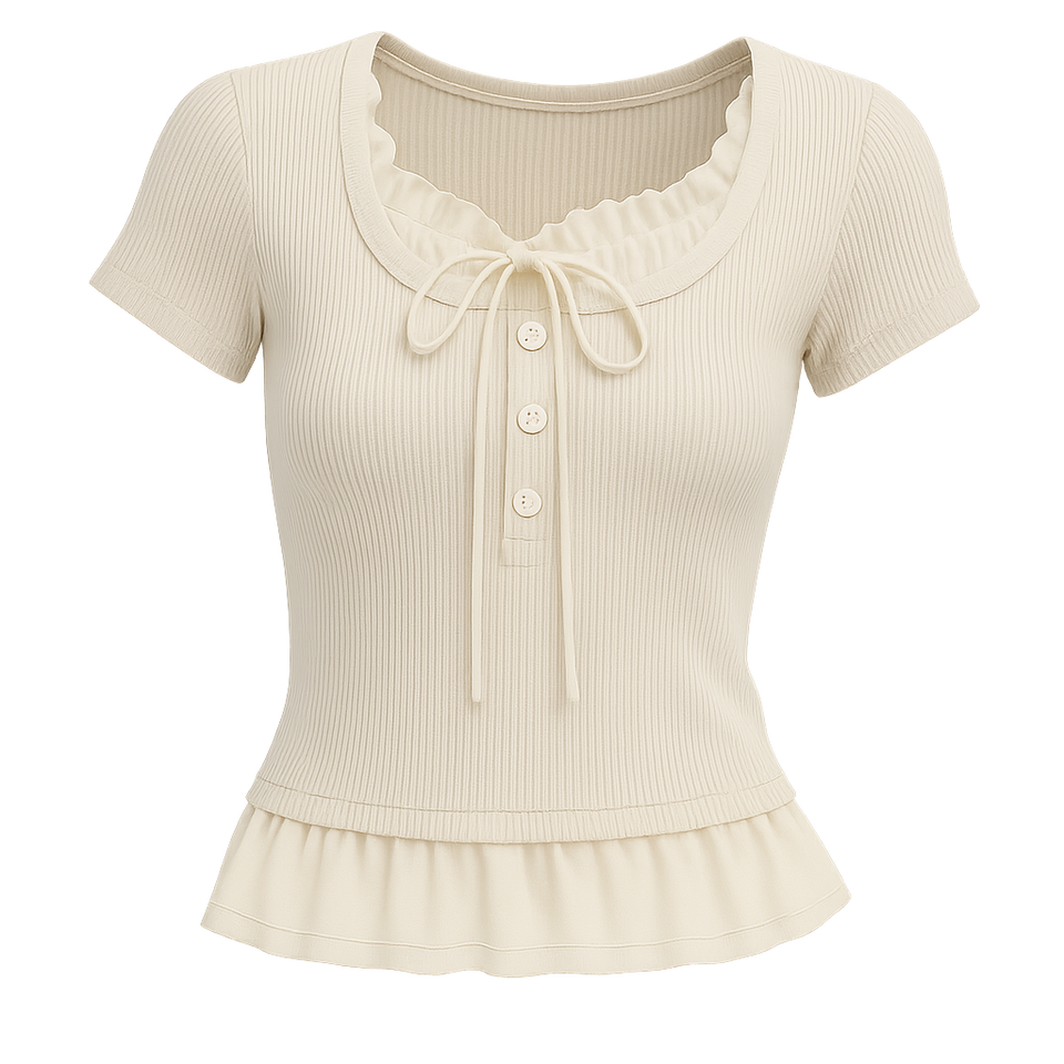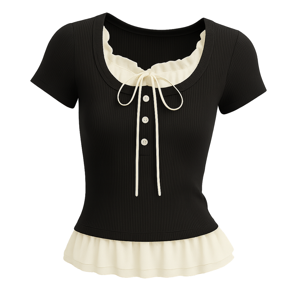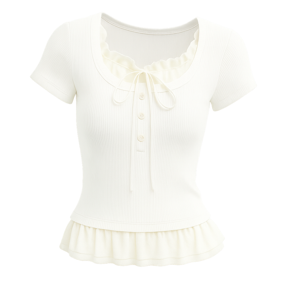 เสื้อถักลูกไม้แขนสั้นน่ารักคอปกแต่งระบายสำหรับผู้หญิงเสื้อแต่งโครงผ้าฝ้าย100% สไตล์หวานชุดฤดูร้อน