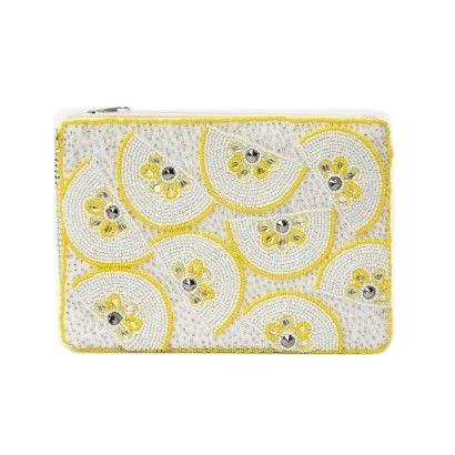 กระเป๋าใส่เหรียญประดับลูกปัดสีเหลืองและสีแดงงานปักลวดลายระดับพรีเมียมมีสไตล์น่ารักพร้อมการตกแต่งที่มีคุณภาพสูงโดยบริษัทฮิบา