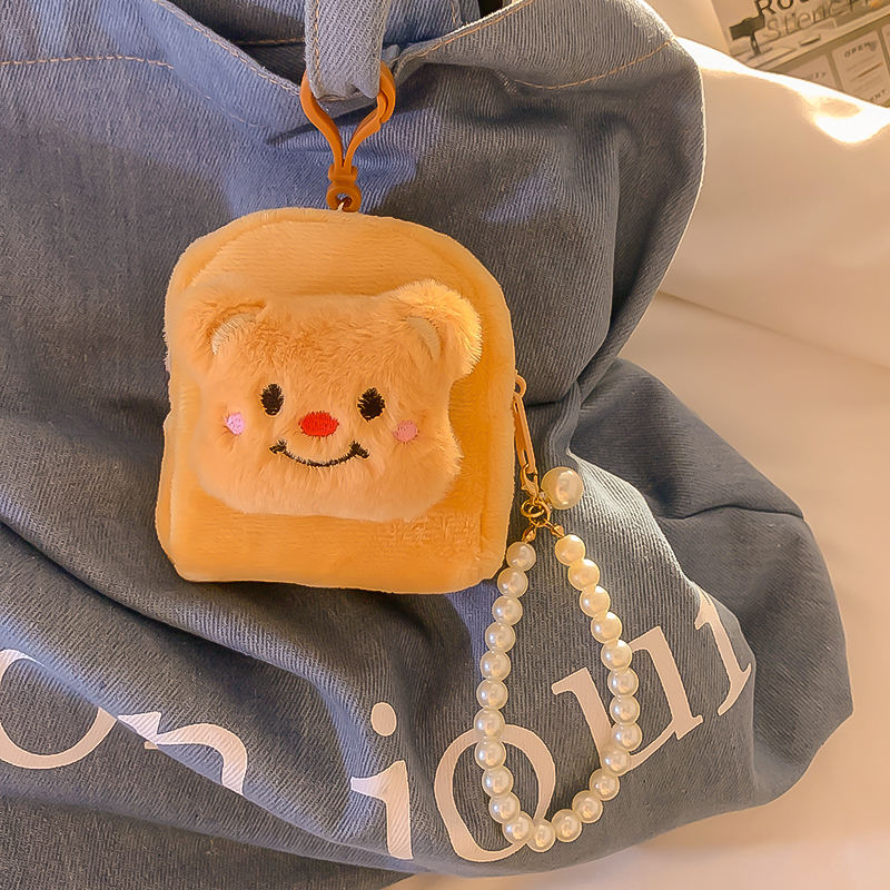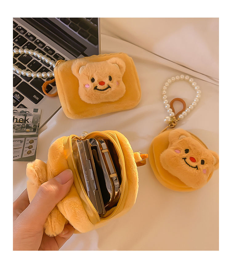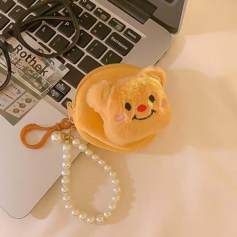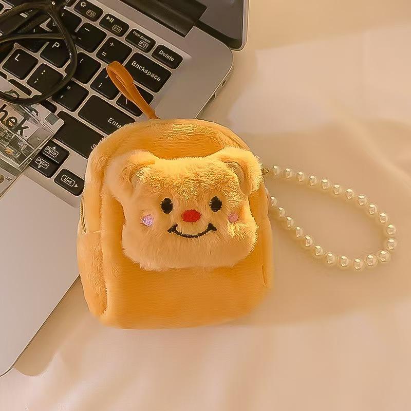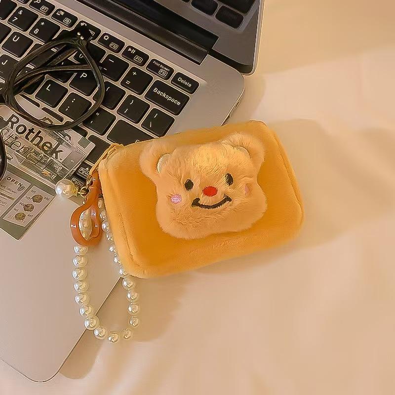 Cute Teddy Bear Plush Card Bag Girl's Mini Leather Coin Purse Student Backpack Keychain Pendant Portable Headphone Case