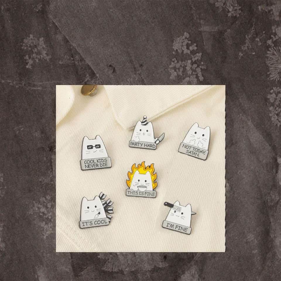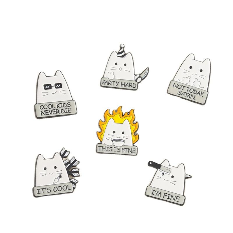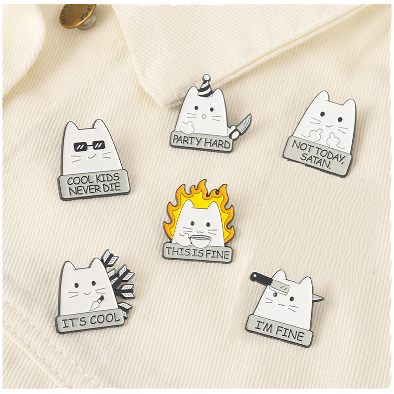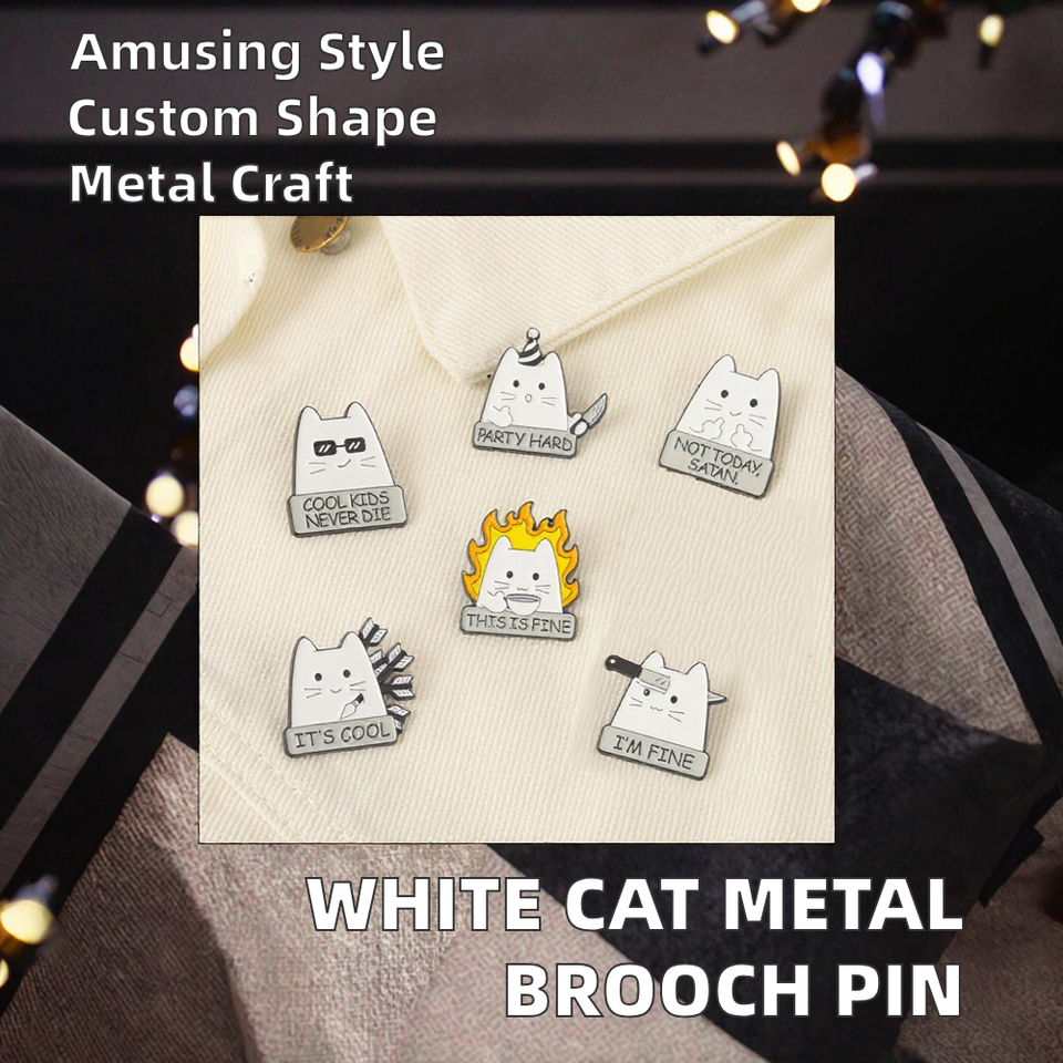 เข็มกลัดรูปแมวสีขาวน่ารัก ป้ายโลหะตลกๆ ตกแต่งเสื้อผ้า กระดุมติดเสื้อ ของตกแต่งที่ไม่เหมือนใคร สำหรับแฟชั่น งานวันเกิด วันชาติ
