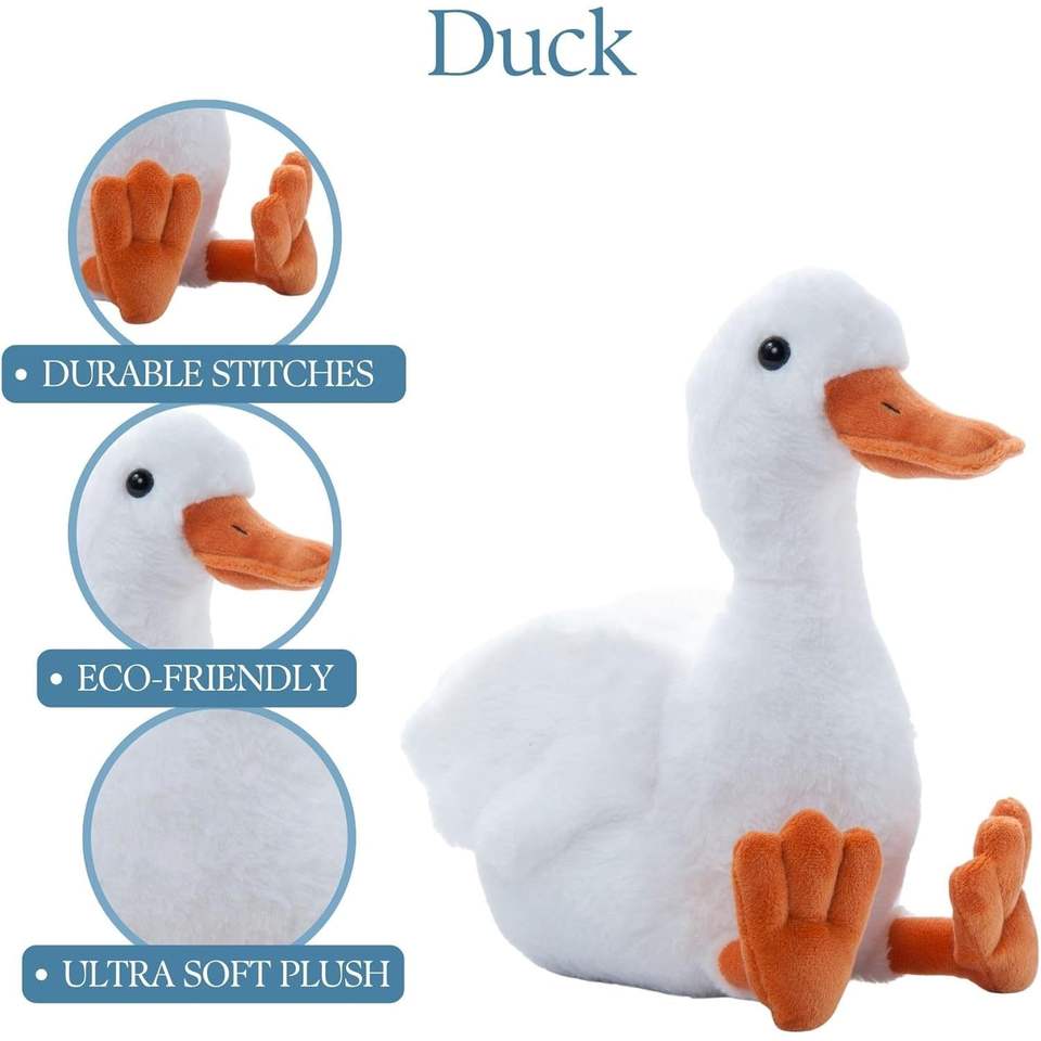 ตุ๊กตาเป็ดสีขาวน่ารักยัดไส้รูปสัตว์เป็ดที่มีเท้าสีส้มเหมาะเป็นของขวัญสำหรับเด็กและคนรักเป็ด