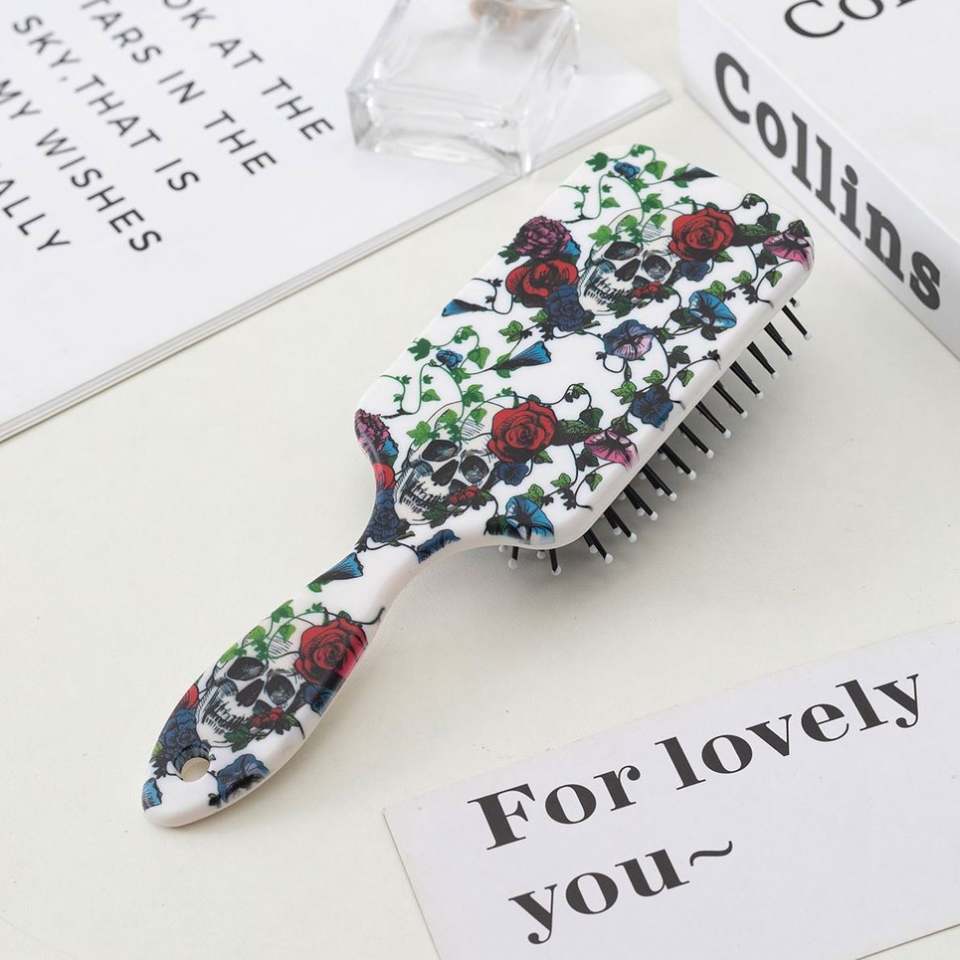Cute Women Anti-Static Paddle Brush Scalp Massage Hair Styling Tool with Curly Wig Detangling Hairbrush Made of Plastic