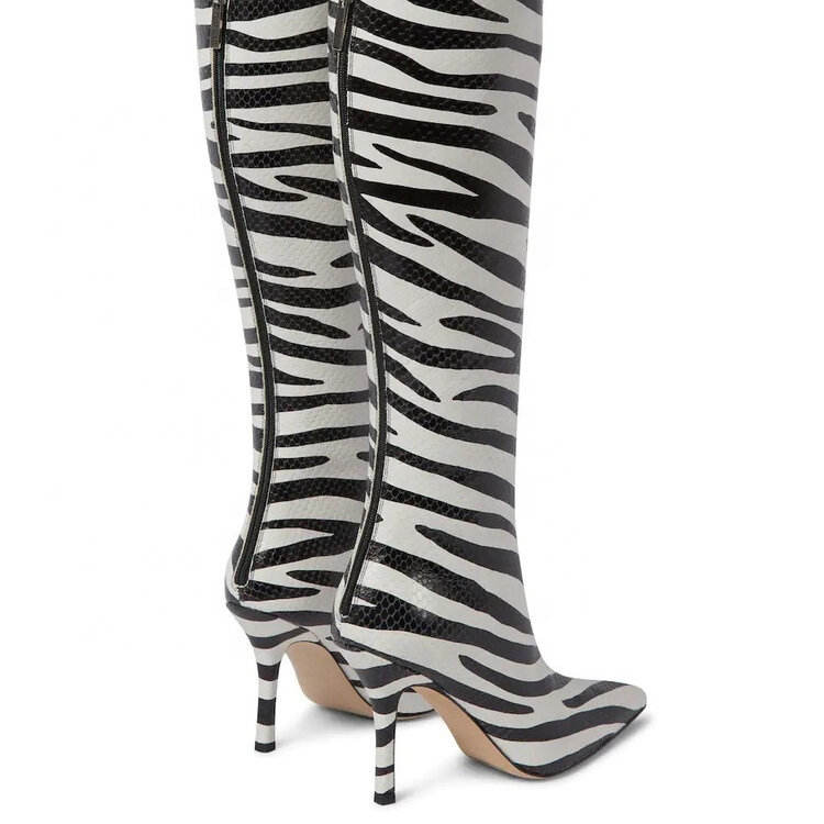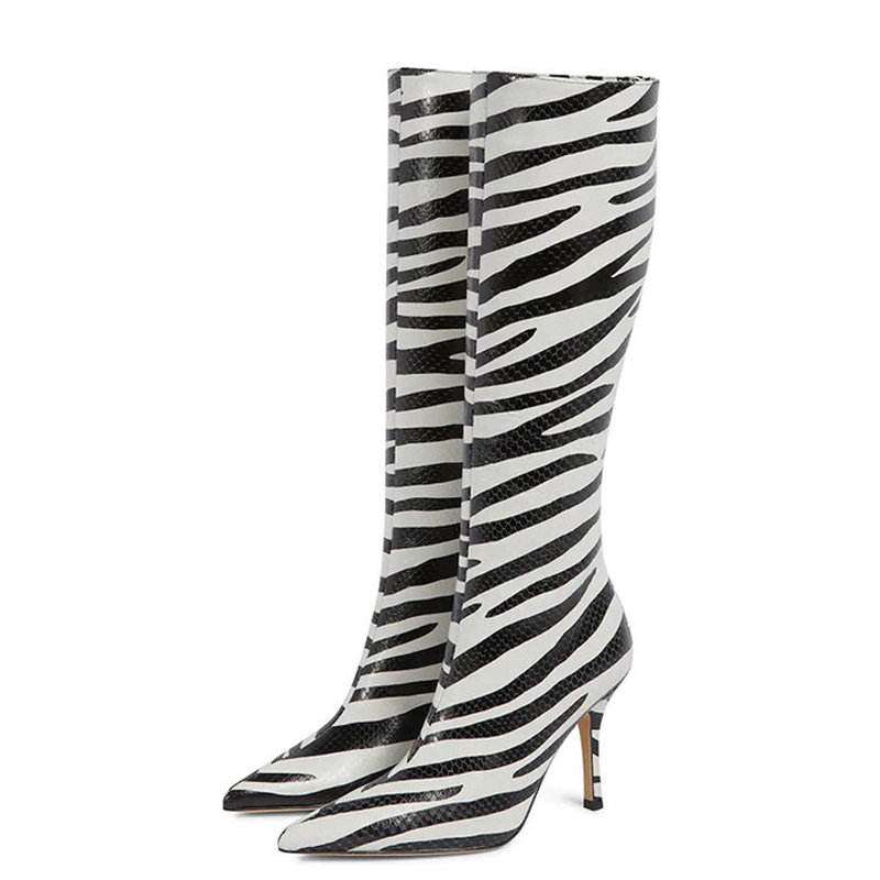 รองเท้าบูทคาวบอยลายม้าลายน่ารัก ความสูงระดับเข่า ปลายแหลม พื้นยาง ปิดด้วยซิป สไตล์ตะวันตก สำหรับฤดูหนาว
