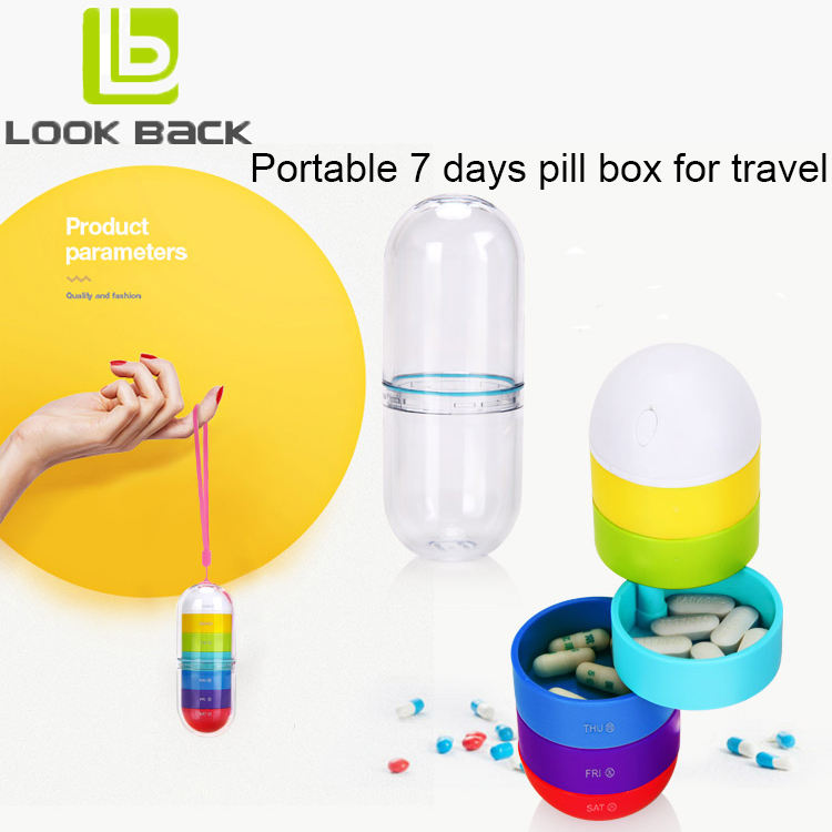 กล่องยาพกพาแบบมินิมอลน่ารัก ป้องกันการรั่วซึม กล่องใส่ขนม 7 วัน สำหรับเดินทางหรือทำงาน ด้านนอกโปร่งใส ด้านในสีรุ้ง