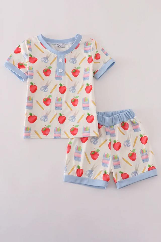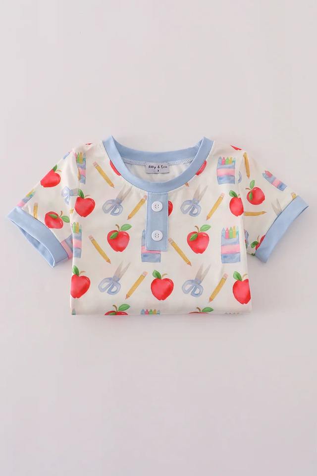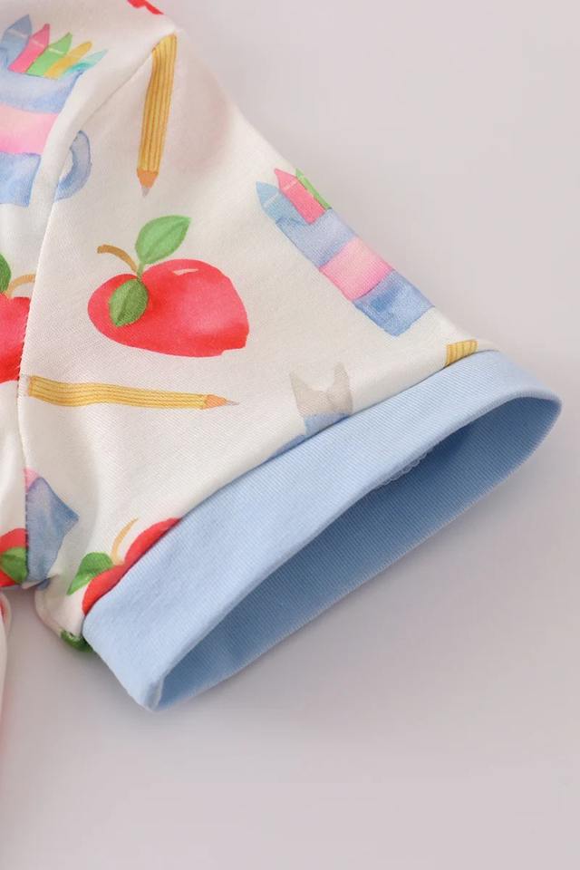 เครื่องแต่งกายพิมพ์ลายดินสอแอปเปิ้ลขี้เล่นน่ารักและอินเทรนด์สำหรับเด็กวัยหัดเดินและเด็กสำหรับสภาพอากาศที่อบอุ่นสวมใส่สบาย