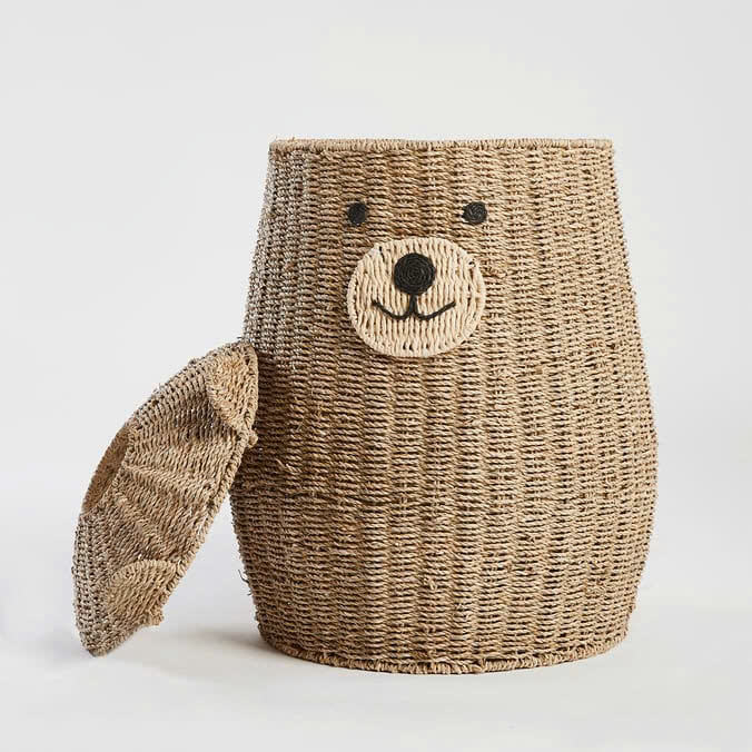 Cute Bear Shape Baby Storage Basket Seagrass Basket Storage Organizer for Kid Storage Toy Clothes