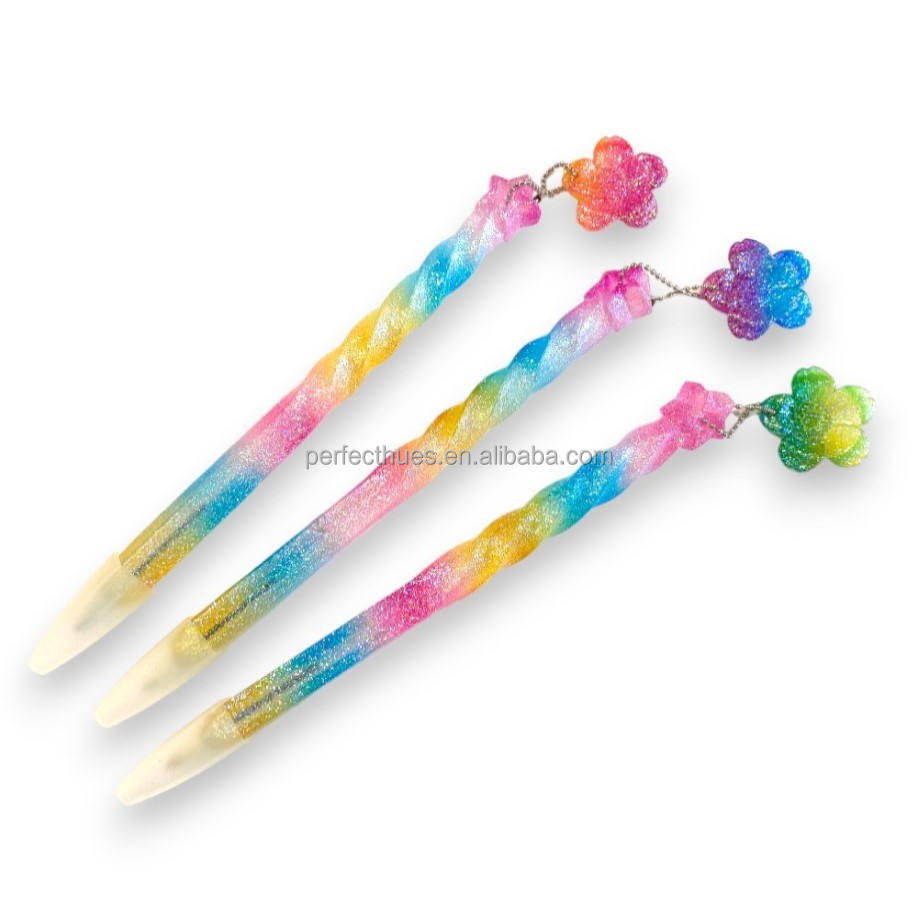 คำอธิบาย:บาร์เรลปากกาบิดสีฝันพร้อมเสน่ห์แขวนดอกไม้