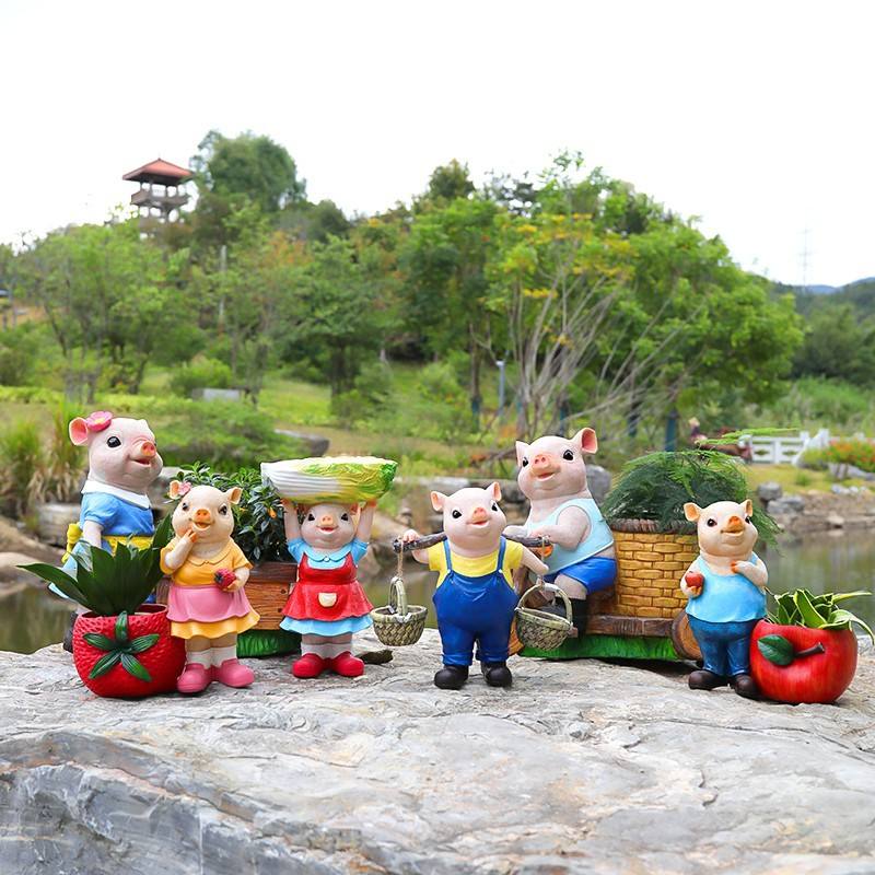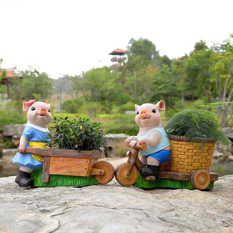 กระถางดอกไม้รูปหมูน่ารัก ตกแต่งสวนสวยงาม งานฝีมือเรซิ่นอีพ็อกซี่ สำหรับจัดสวนภายนอกอาคาร
