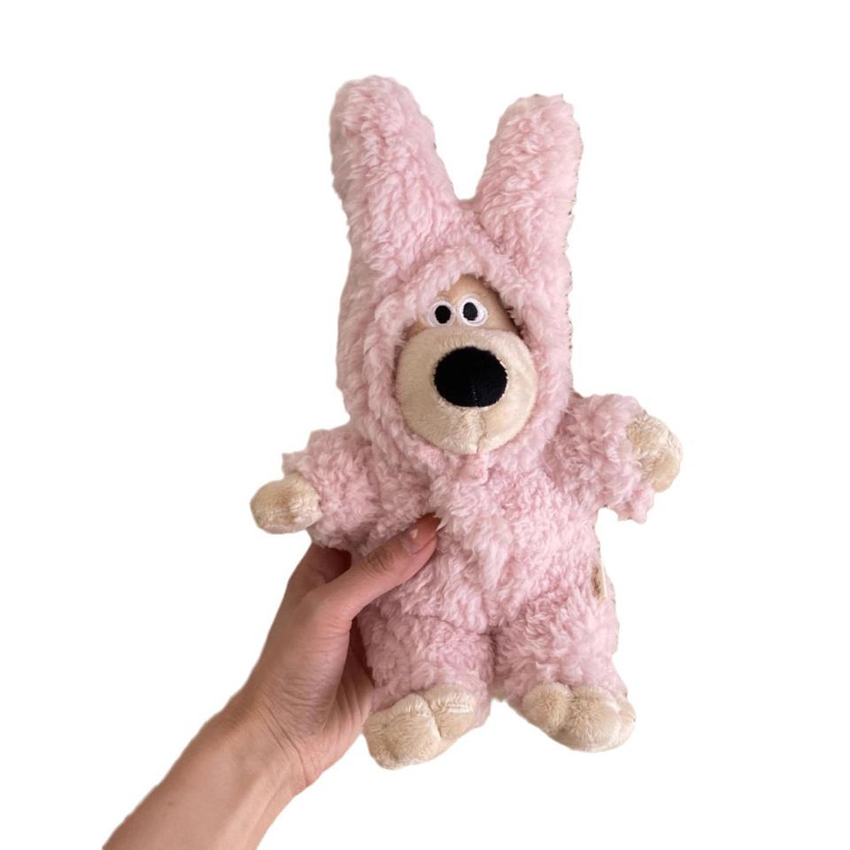 พวงกุญแจตุ๊กตาสีชมพูน่ารัก ไฟ LED ลายการ์ตูนพิมพ์กราเวียร์ พร้อมเสื้อผ้า ของตกแต่งรถยนต์ ของขวัญ ปลอดภัย ทำจากทองแดง