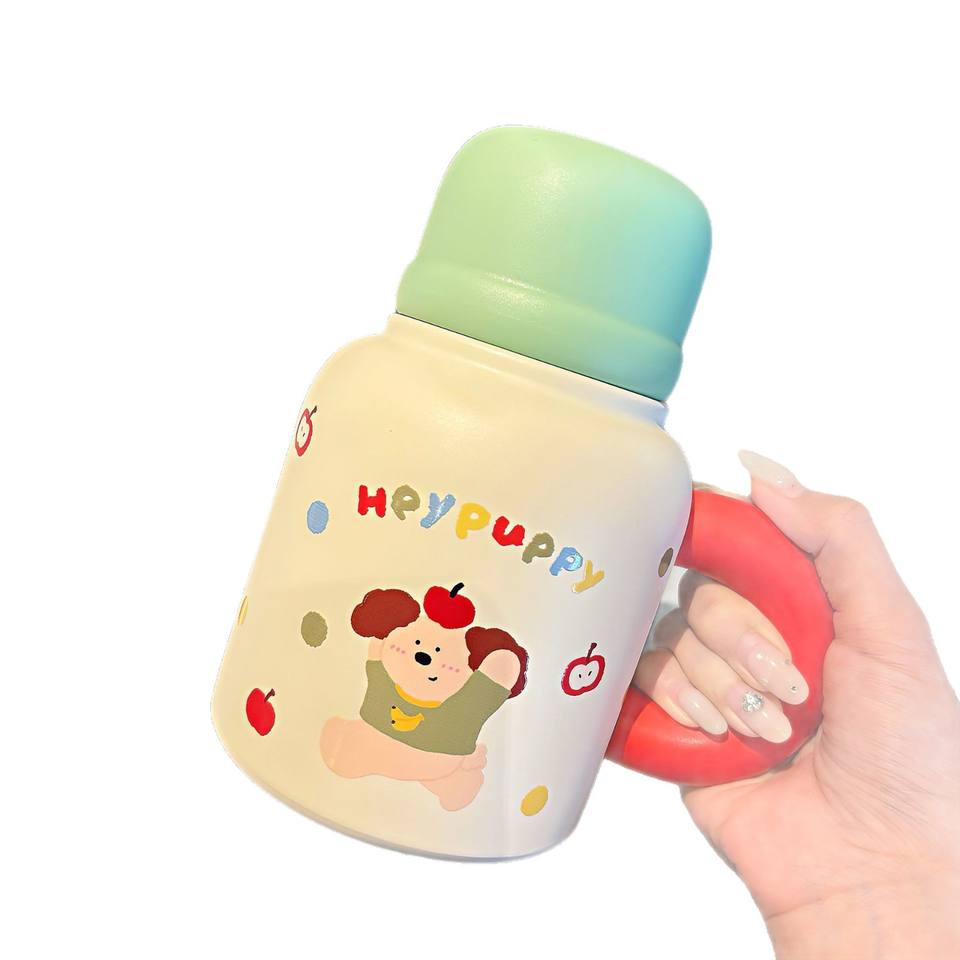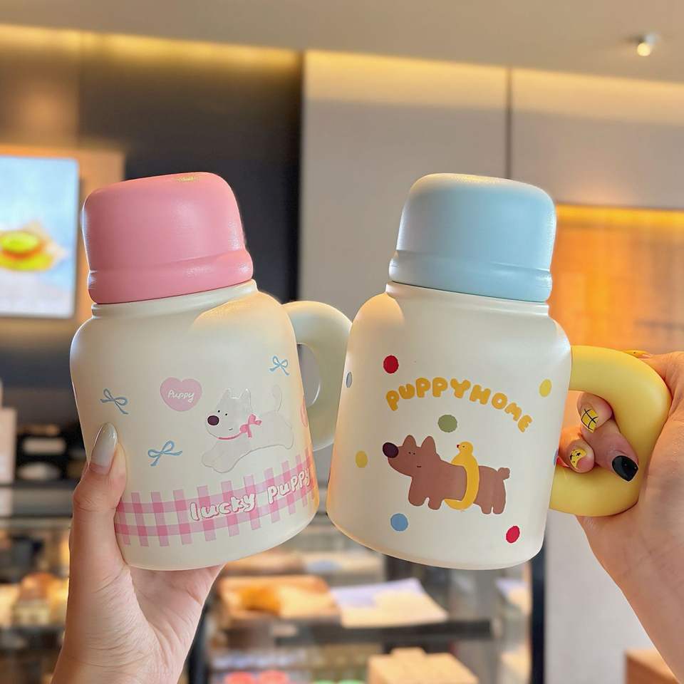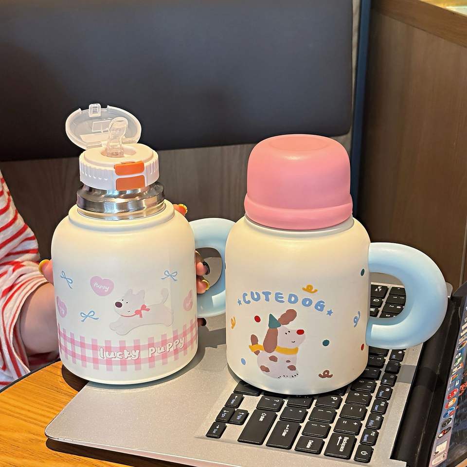 ขวดน้ำเก็บอุณหภูมิ Cutedog สแตนเลส 316 แก้วน้ำสำหรับสำนักงานพร้อมหูจับขนาดใหญ่ ดีไซน์หลอดดูดคู่