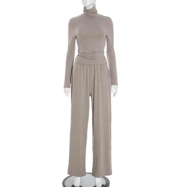 Viviblook ชุด D25ST396ผู้หญิง, ชุดเสื้อแขนยาวคอสูงลำลองกางเกงขายาวทรงตรงชุดสองชิ้นสำหรับผู้หญิงฤดูใบไม้ร่วง