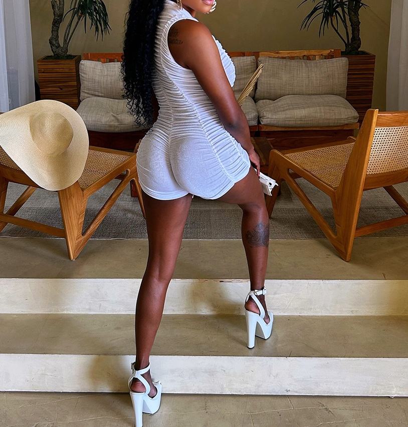 Viviblook ชุดรอมเปอร์แขนกุดสีขาวแบบรูดซิปขึ้นชุดรอมเปอร์เซ็กซี่แบบลำลองสำหรับผู้หญิง Z321RP01 bodycon