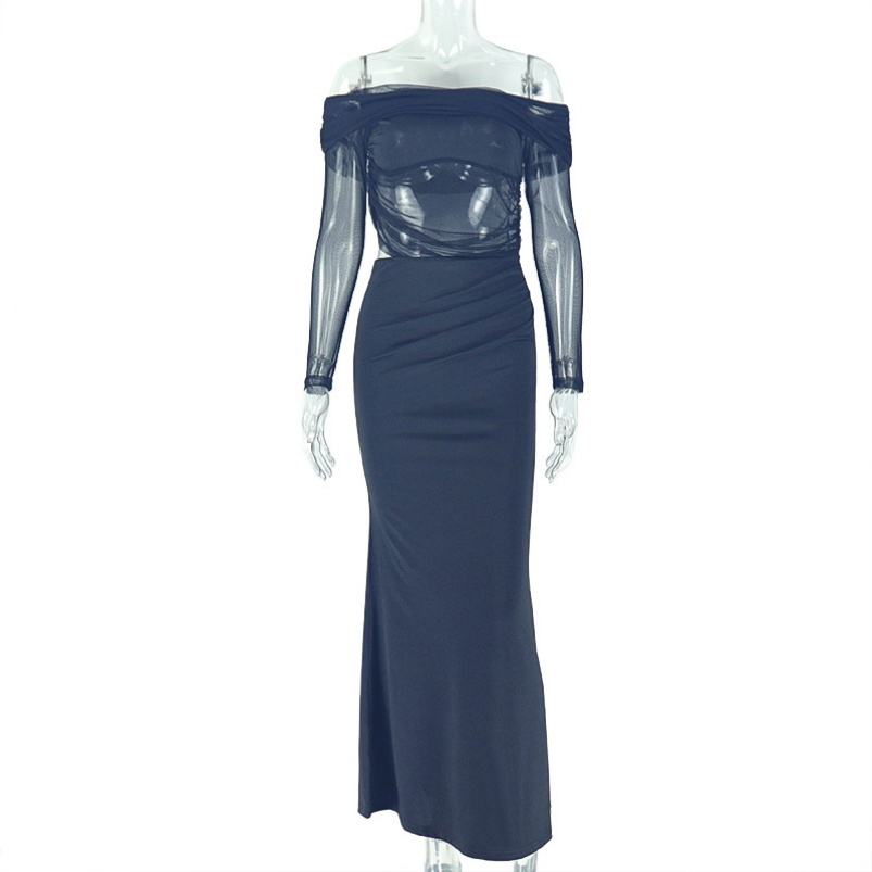 Viviblook ชุดเดรส Z401DS01สำหรับผู้หญิง, ชุดเดรสแม็กซี่แขนยาวเข้ารูปแหวกแนวสง่างามแหวกแนว