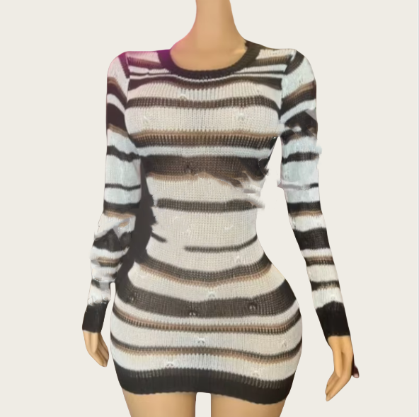 Viviblook ชุดเดรส Z722DS01แขนยาวสำหรับผู้หญิง, ชุดเดรสสั้นเซ็กซี่ถักลายทางสำหรับงานปาร์ตี้ตอนเย็น