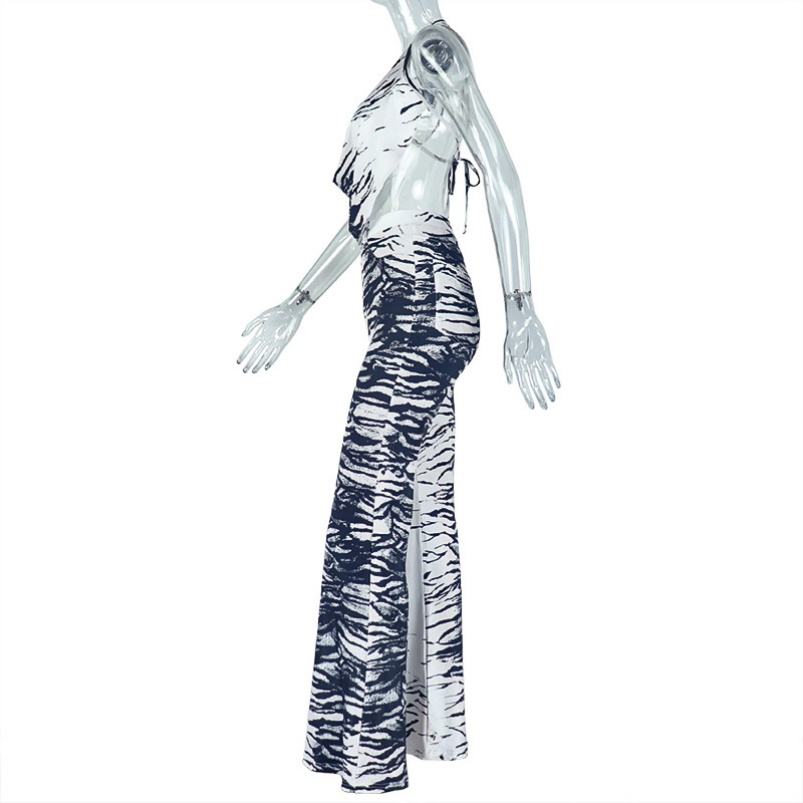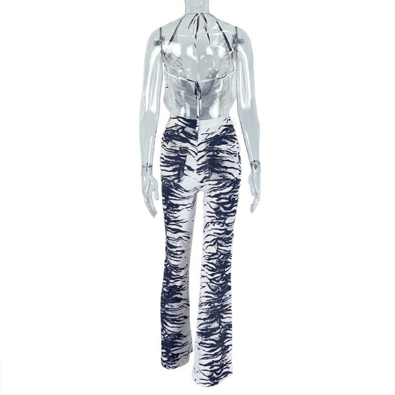 Vivblook ชุด Z812ST01ผู้หญิง2ชิ้นชุดเซ็ตม้าลายเปิดหลังเสื้อทรงหลวมกางเกงขากว้างสีบล็อก