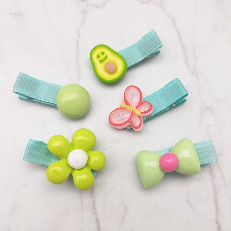 กิ๊บติดผมเด็กผู้หญิงสีเขียวสุดน่ารัก ชุดกิ๊บติดผมรูปดอกไม้ 3 มิติ โบว์ผีเสื้อและผลไม้ สวมใส่สบายและปลอดภัย
