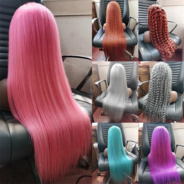 วิกผมลูกไม้ผมแท้สีชมพูอ่อน เทา ฟ้า 99j