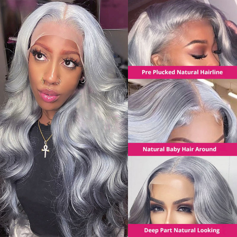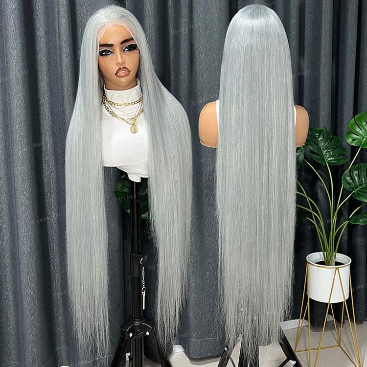 ผู้จำหน่ายวิกผมแบบจัดเรียงเส้นผมตามธรรมชาติ ขายส่งวิกผมลูกไม้เต็มศีรษะสีเงินเทา ผมแท้ ถอนขนแล้ว วิกผมลูกไม้ด้านหน้าแบบ HD ที่ย้อมสี