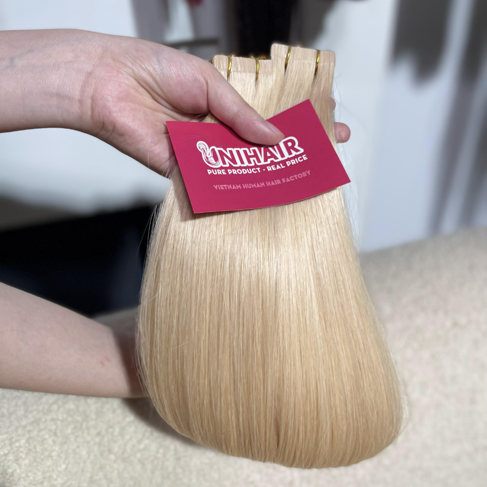 หนังกําพร้าชิดผมธรรมชาติดิบคุณภาพดีที่สุดเทปดึงคู่สุดในต่อผม 100 ผมมนุษย์