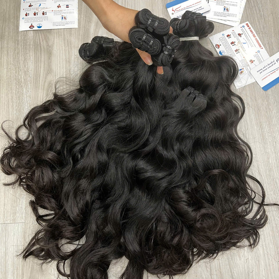 ผมเวียดนามแท้แบบจัดเรียงเส้นผมอย่างดี สีดำธรรมชาติ แบบตรงและแบบหยักศก แบบเย็บสองชั้น พร้อมส่งจากโรงงานโดยตรง