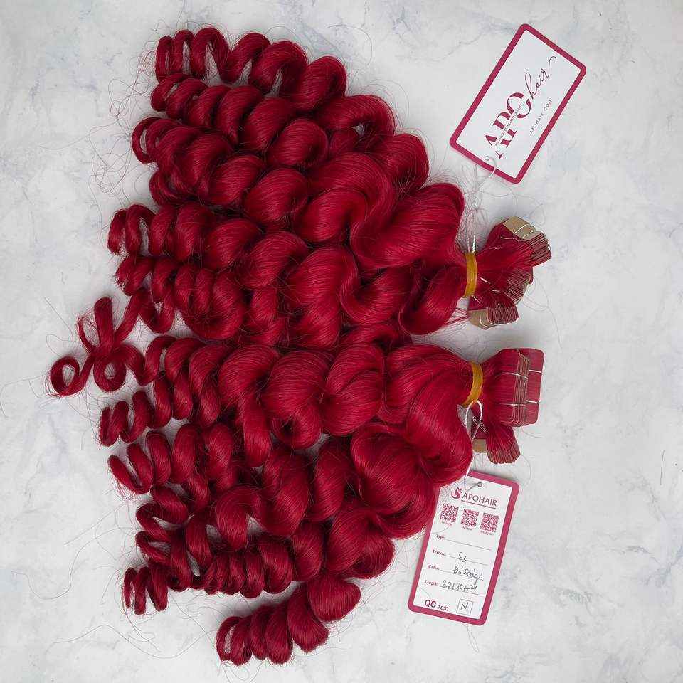 Cuticle Aligned Vietnamese Human Hair Body Wavy Red Tape Hair Extension Double Drawn Tape in Hair Extension