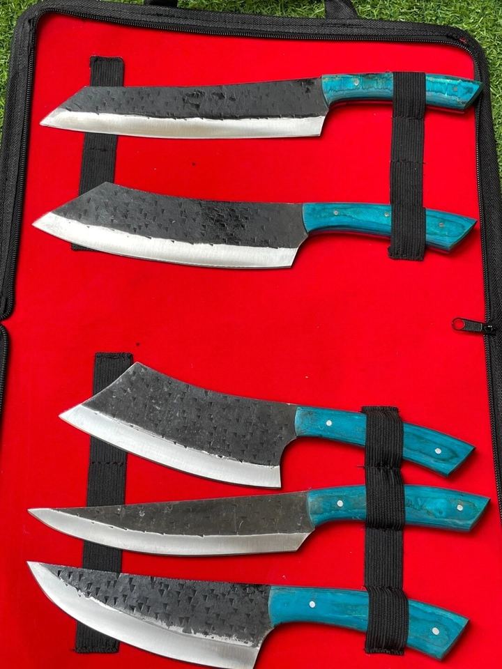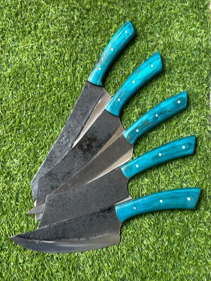 ชุดมีดเชฟ 5 ชิ้น ใบมีดเหล็กคาร์บอน ด้ามไม้ ปรับระดับการจับได้ ผิวขัดเงา เป็นมิตรกับสิ่งแวดล้อม ทนทาน
