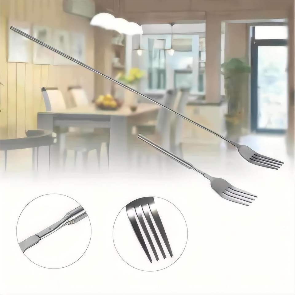 ช้อนส้อม-ขยายได้ถึง25.6นิ้วยืดได้สำหรับบาร์บีคิวส้อมอาหารเย็นส้อมผลไม้ขนมยาว