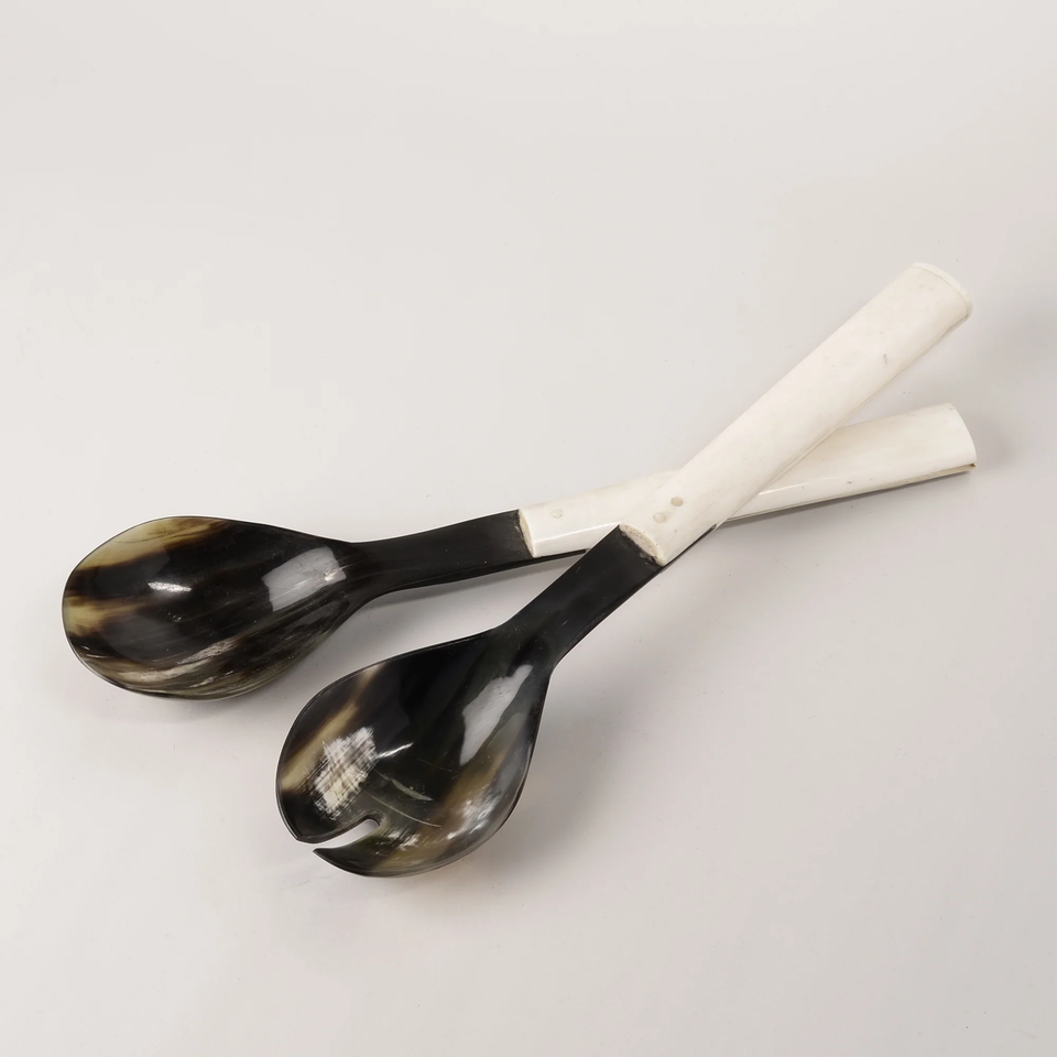 ชุดเครื่องใช้บนโต๊ะอาหารช้อนตักสลัดเขาควายมีด้ามจับกระดูกเครื่องครัวที่น่าสนใจสำหรับช้อนสลัดดีไซน์งานปาร์ตี้แบบคลาสสิก