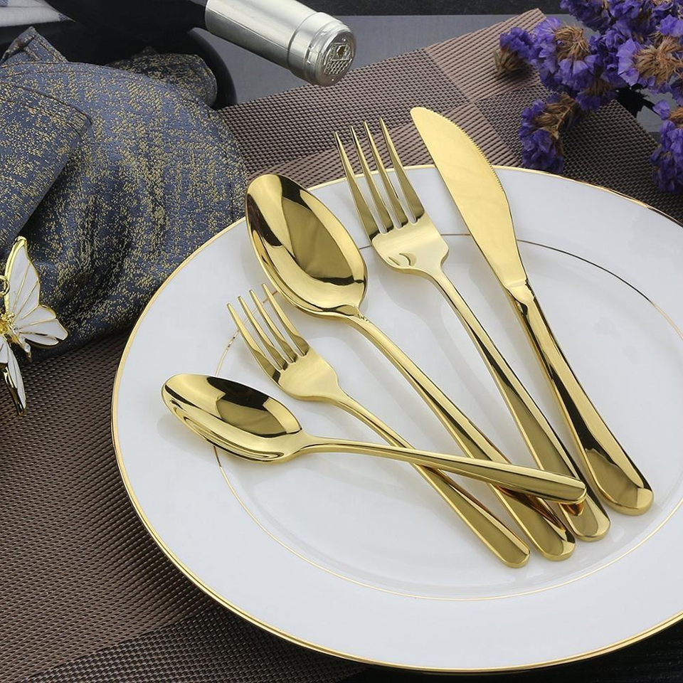 ชุดช้อนส้อมสแตนเลสสีทอง ช้อนส้อมสแตนเลสชุบทอง อุปกรณ์โรงแรมและร้านอาหารอื่นๆ กระจกเงา