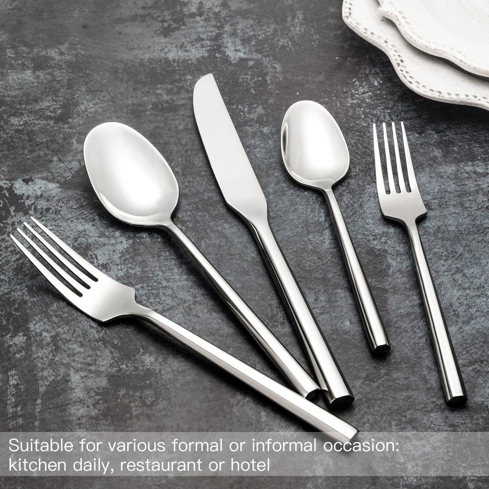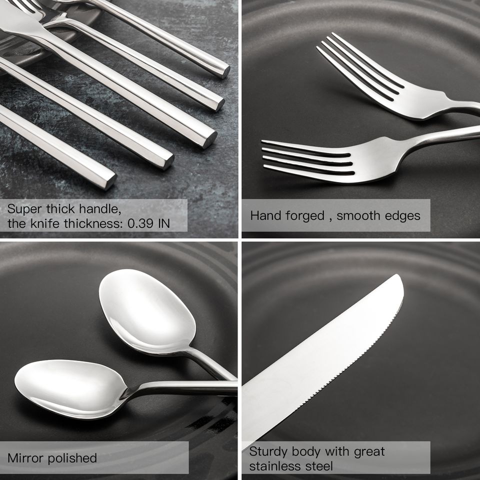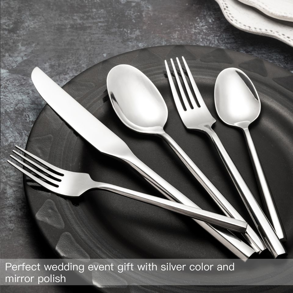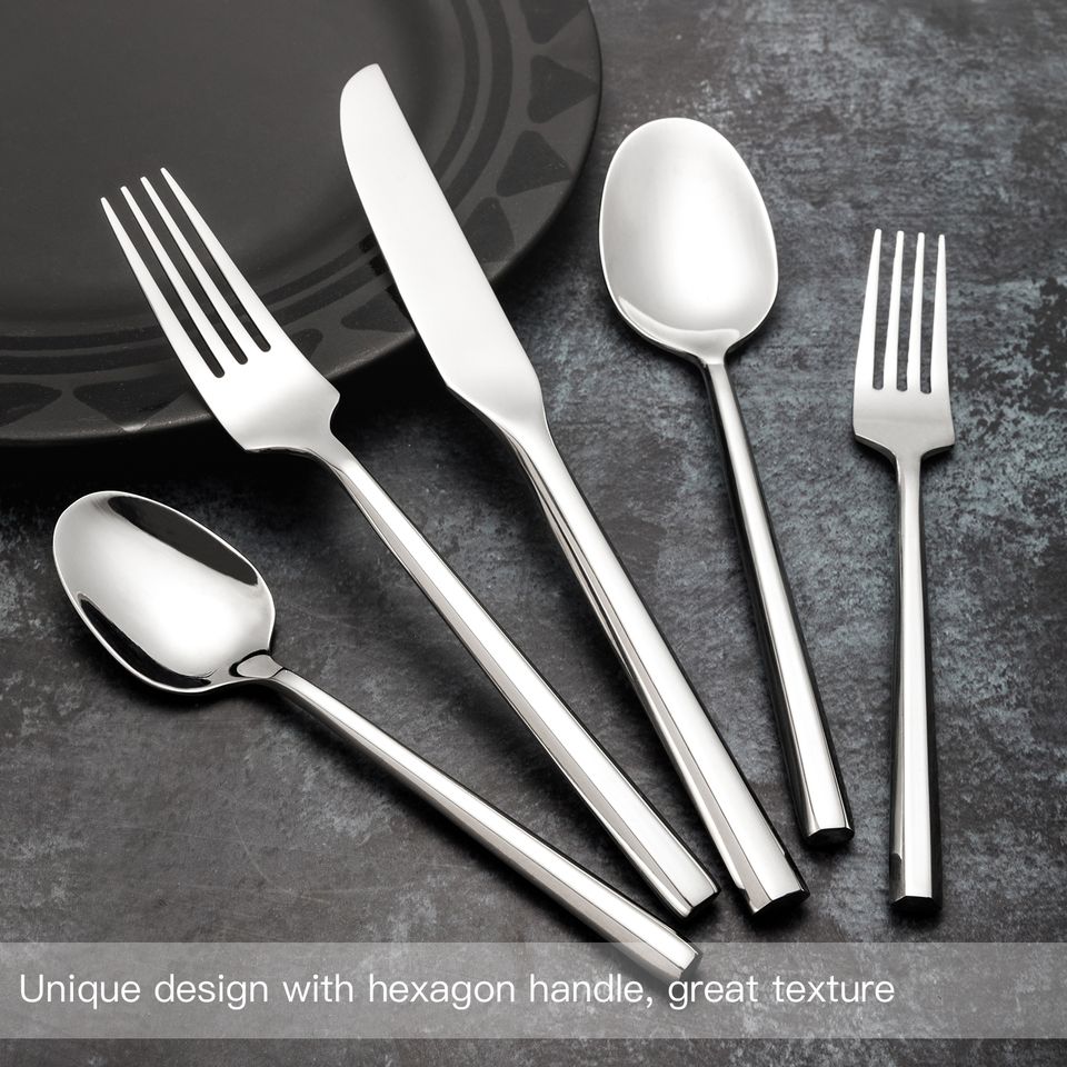 ชุดเครื่องใช้บนโต๊ะอาหารแบบหกเหลี่ยมทำจากสเตนเลสเครื่องเงินสำหรับร้านอาหาร