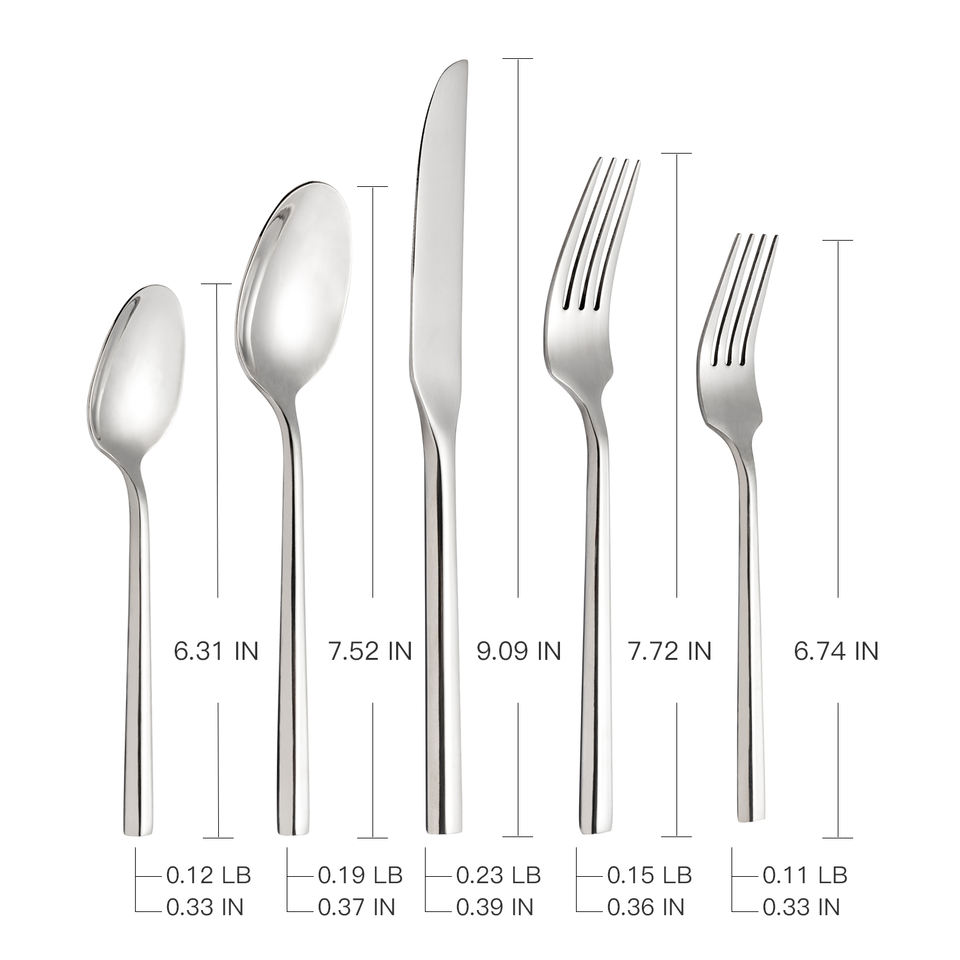 รวม1ชุด:1มีดอาหารค่ำ, 1ช้อนอาหารเย็น, 1ส้อมอาหารเย็น, 1ช้อนชา, 1ส้อมสลัด