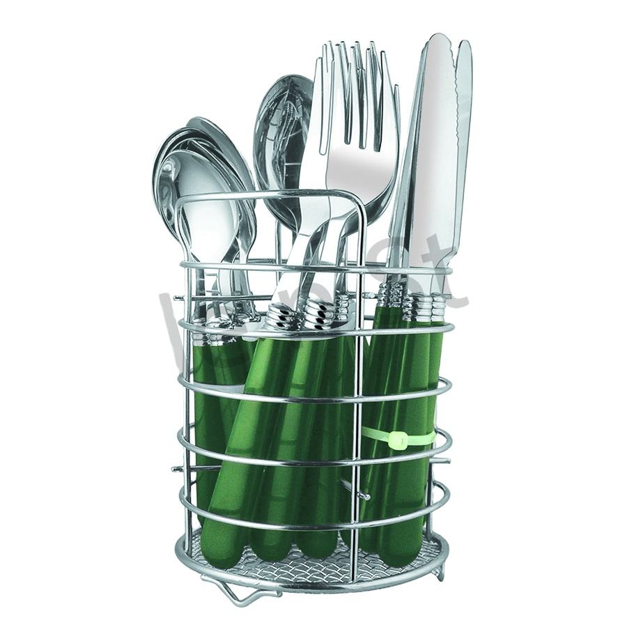 ชุดช้อนส้อมพร้อมที่ยึดลวดชุดช้อนส้อม24ชิ้นชุดมีดสแตนเลสพร้อมที่จับสีเขียวสแตนเลส